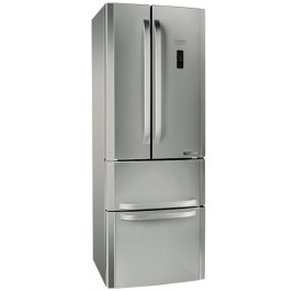 Функциональный и вместительный холодильник Hotpoint-Ariston E4DY AA X C поможет вам охладить и заморозить большой объем продуктов. Данная модель имеет четыре двери. Две двери в холодильном отделении и две двери в морозильном отделении. Холодильное отделение разделено на зоны для удобного хранения продуктов. В левой части холодильной камеры вы сможете хранить, например, консервированные продукты, сыр, бутылки с различными соусами. В правой части вы сможете хранить продукты, которые часто употребляете, например, рыбу, мясо или яйца. Также в нижней части холодильной камеры расположено два объемных ящика для хранения овощей и фруктов. Морозильное отделение имеет три отделения. Два первых ящика стандартные, в которых удобно хранить часто используемые продукты, и большой ящик для длительного хранения. В холодильнике Hotpoint-Ariston E4DY AA X C используется антибактериальное покрытие стенок, которое снижает размножение бактерий, что значительно увеличивает срок хранения продуктов. Данная модель имеет внешний дисплей, с помощью которого удобно контролировать режим работы холодильника. Таким образом, холодильник Hotpoint-Ariston E4DY AA X C сможет ответить вашим требованиям для длительного хранения продуктов.