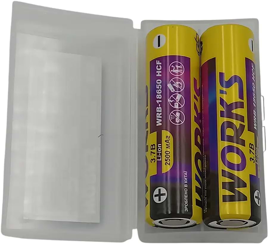 Аккумулятор тип 18650 Works Li-ion WRB-18650 HCF 2500mAh 25A с защитой 2 шт. (146829)