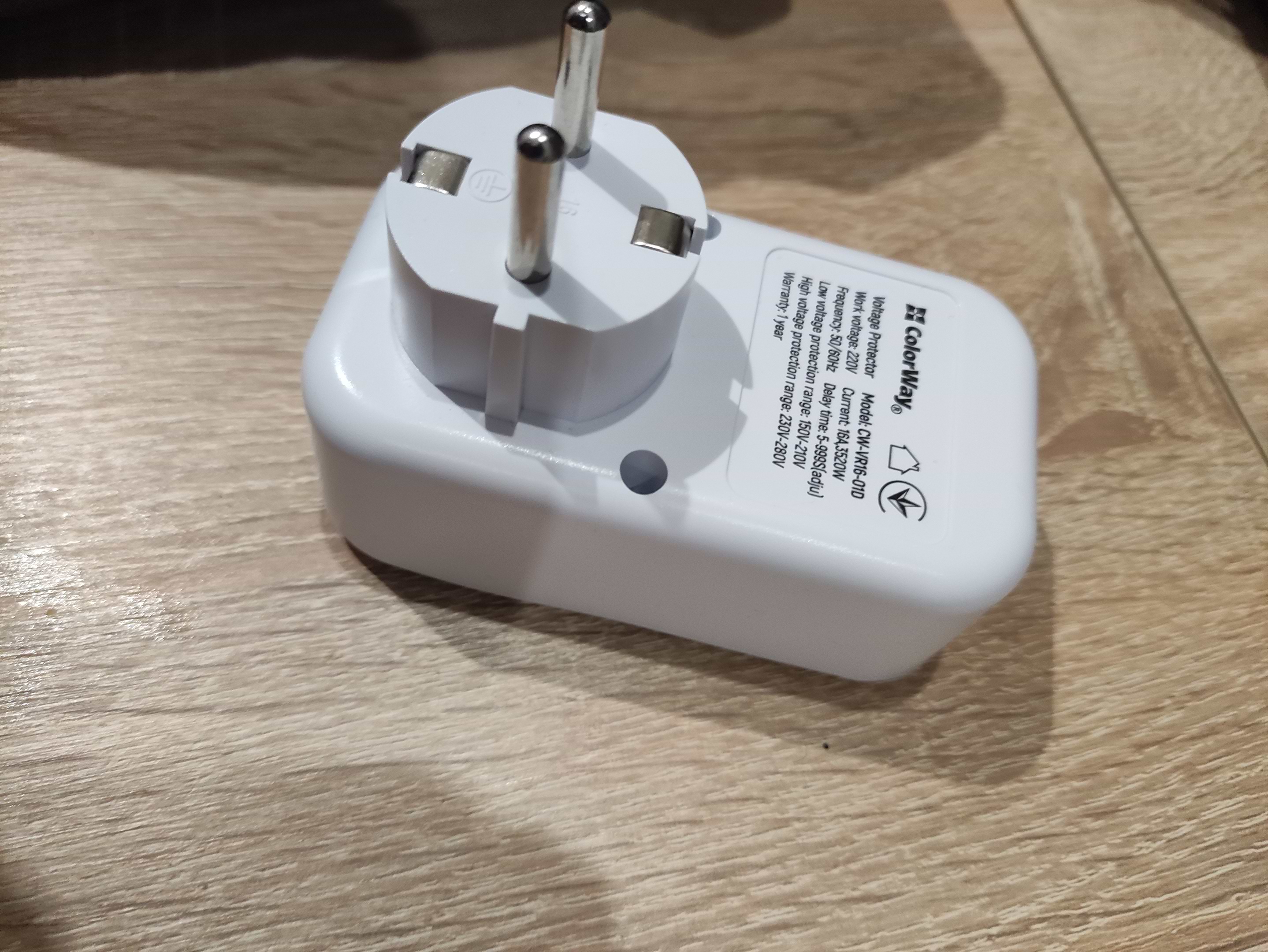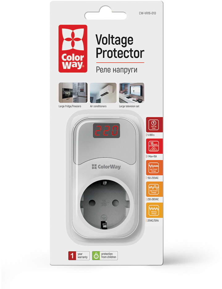 Автомат защиты от всплесков напряжения Colorway 16A/3680W 150V-210V/230V-280V DS1 White (CW-VR16-01D)