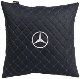 Автомобильная подушка EVAtech ECO 40x40 см Mercedes-Benz черная с синей нитью SPBCSBLV016