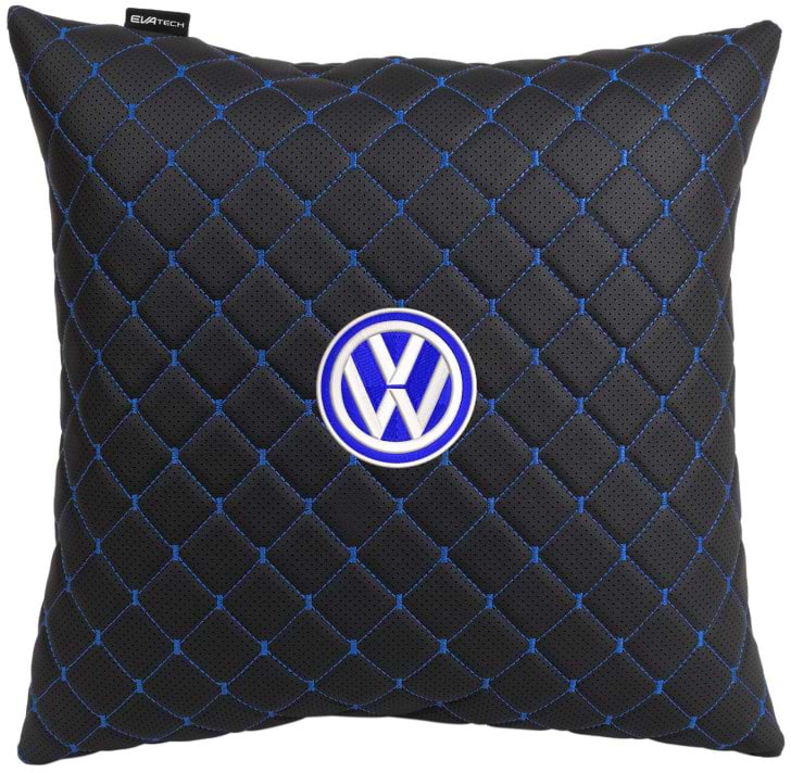 Все о Автомобильная подушка EVAtech ECO 40x40 см Volkswagen черная с синей нитью SPBCSBLV033