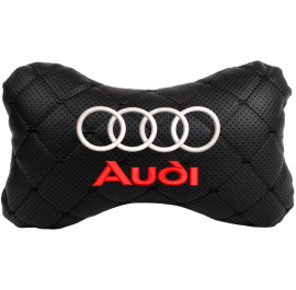 Автомобильная подушка на подголовник EVAtech ECO 27х16 см Audi черная с черной нитью SPCRBBV003