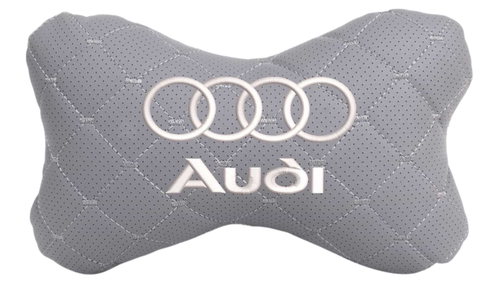 Автомобильная подушка на подголовник EVAtech ECO 27х16 см Audi серая с серой нитью SPCRGGV095
