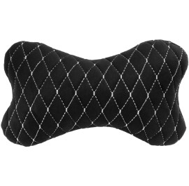 Автомобильная подушка на подголовник EVAtech из алькантары 27х16 см черная с белой нитью, малый ромб SPALMRBW