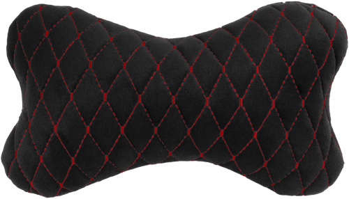 Все о Автомобильная подушка на подголовник EVAtech из алькантары 27х16 см черная с красной нитью, малый ромб SPALMRBR