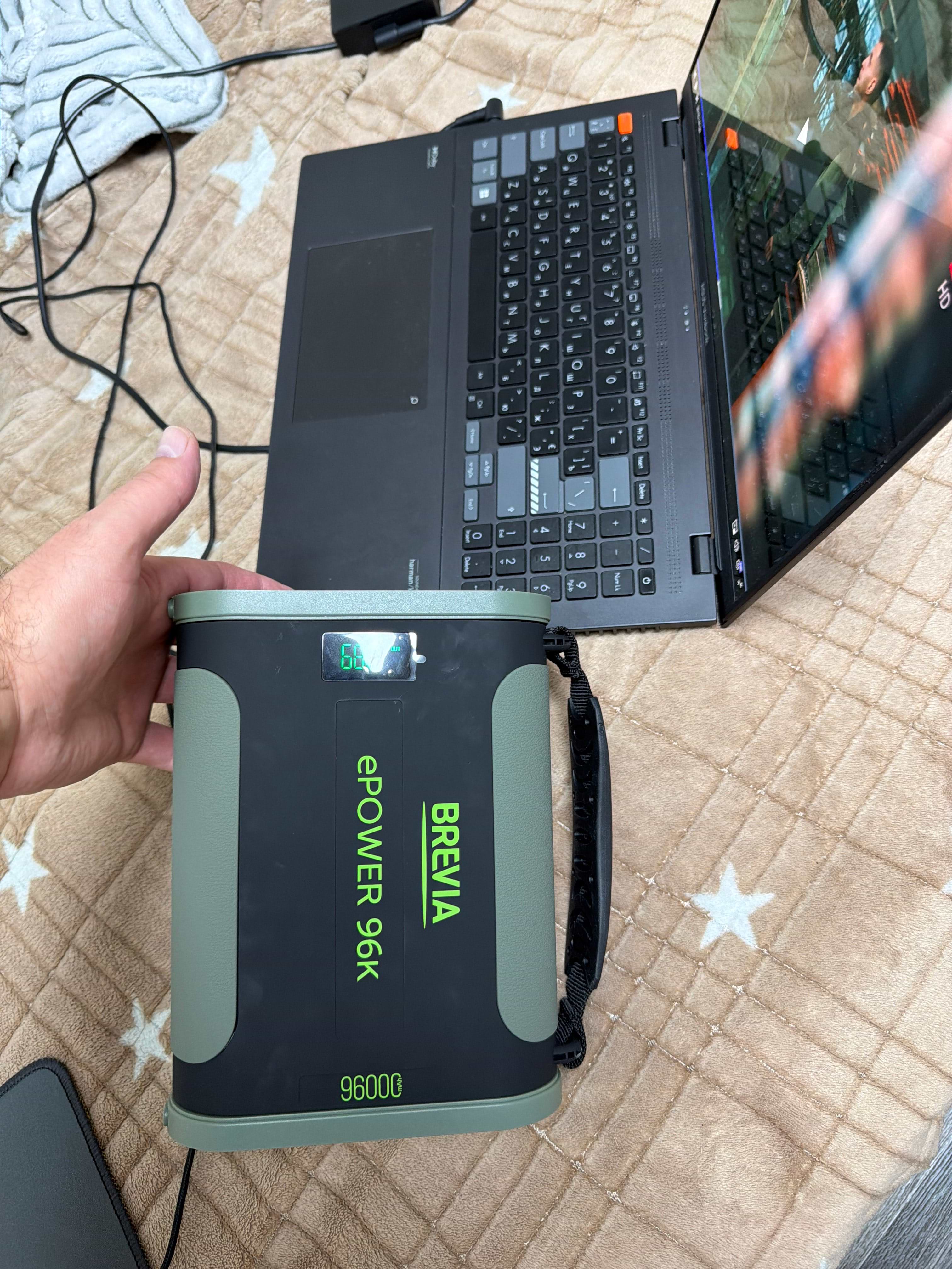 Пользуюсь для зарядки ( работы с ноутом) Legion slim, I5, 4060 дискретка и встройка в проце. При нагрузке, к примеру DEAD SPASE ( DLSS on) все высокое - от аккумулятора - 30 мин, с этой батарейкой от 98 до 26 % - более 5 часов при этом ноут заряжается по Tupe C - и думает что он заряжается от сети.