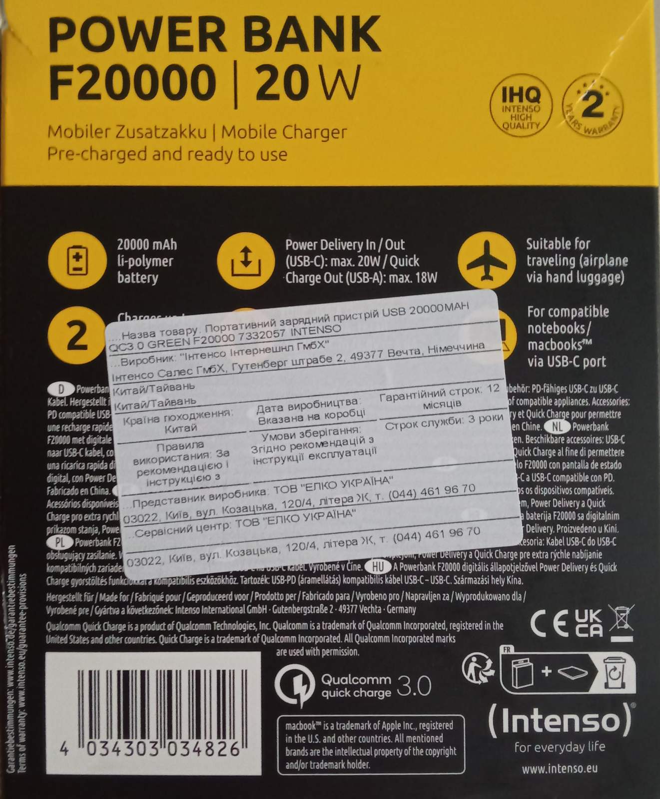 Характеристики Intenso F20000 20000MAH QC3.0 Green (7332057)