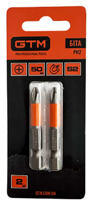 Набор бит для отвертки GTM PH2 50 мм 2 шт. (SB-H2-50B)