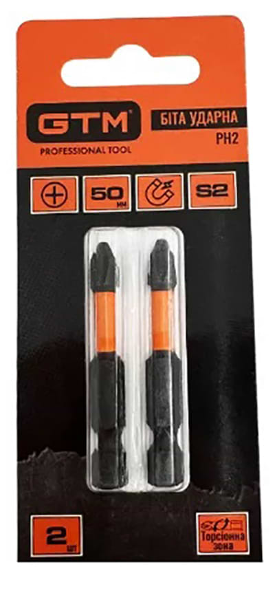 Набор бит для отвертки GTM PH2 50 мм 2 шт. (SBI-H2-50B)