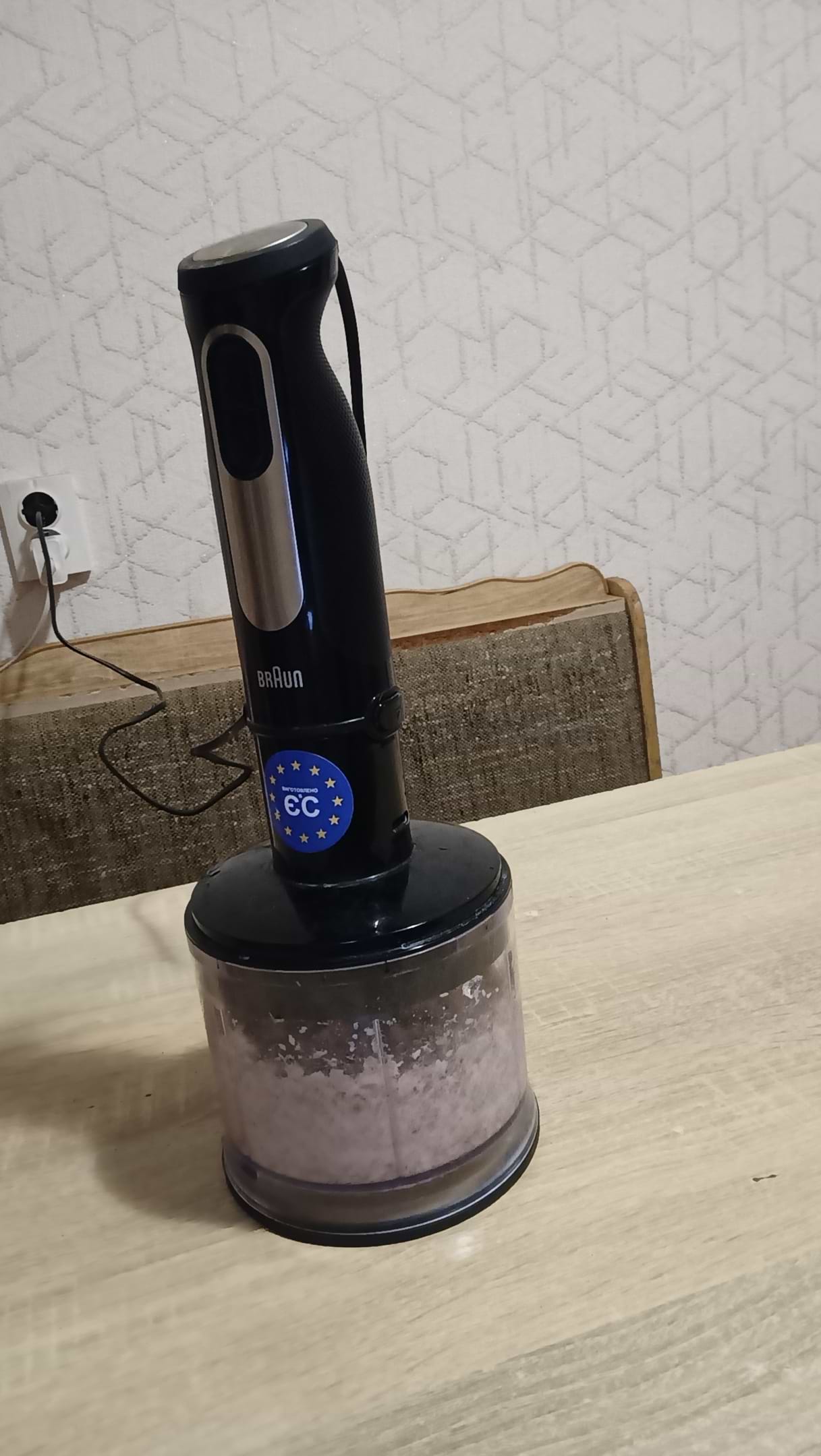 Потужний і швидко справляється з будь-якими продуктами. Працює акуратно, без бризків. Зручно лежить у руці, не ковзає. Є різні насадки, все легко міняється. Добре подрібнює та збиває — результат рівномірний. Легко мити після використання.