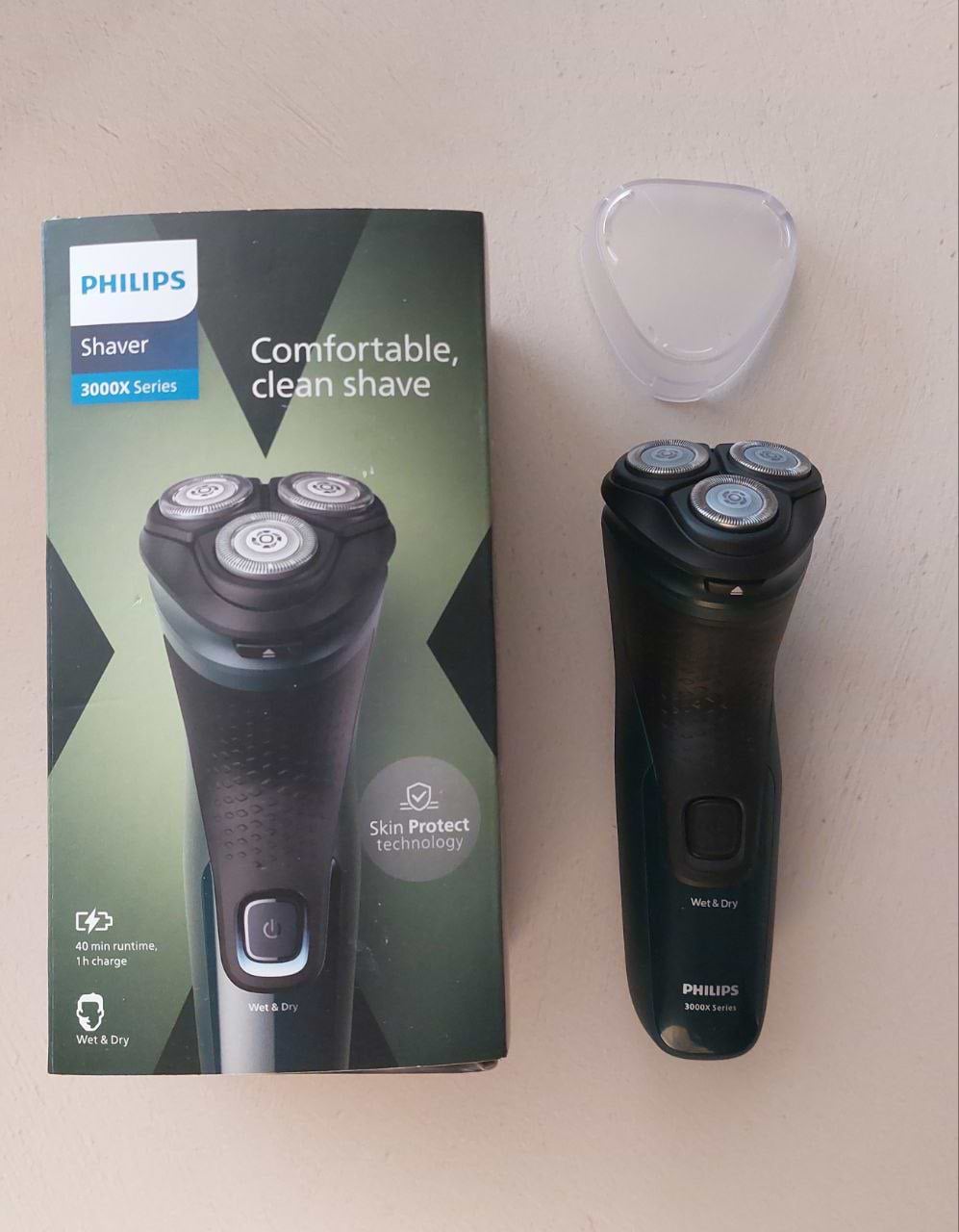 Моя перша електрична бритва. З моменту придбання користувався декілька разів. Перші враження - більш комфортніший процес гоління, в порівнянні з одноразовими станками, відсутність будь-яких неприємних відчуттів. Шкіра після гоління гладка, подразнень не виникає(навіть без гелю після гоління), всі ділянки обличчя та шкіри рівномірно поголені. Пробував тільки сухе гоління бритвою. По часу гоління займає трохи більше, ніж станком на декілька хвилин. Доволі тиха робота. Дуже зручно та швидко миється опліскуванням водою. Також є можливість активувати додатковий рік гарантії відсканувавши штрихкод всередині пакування, і реєстраціх бритви на сайті philips.ua. Загалом задоволений покупкою.