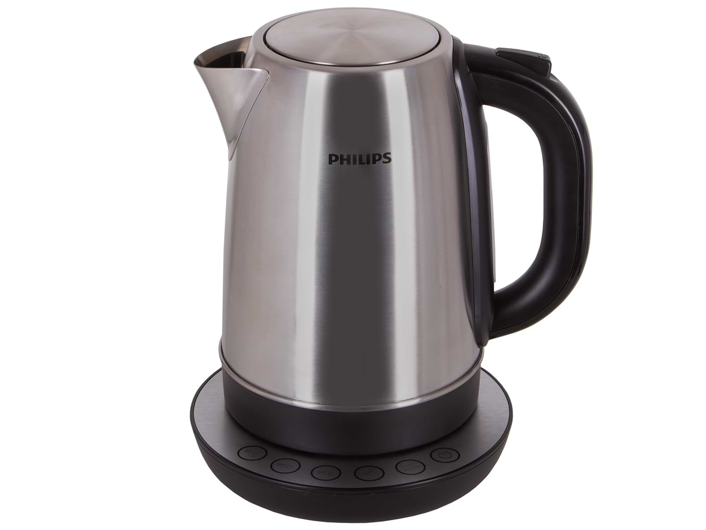 HD9326- электрический чайник, занимающий верхнюю строчку в модельном ряду компании Philips. Колба выполнена их нержавеющей стали, а прилегающая к ней ручка - пластиковая. Возле нее размещена шкала наполнения, верхняя отметка которой указывает на объем чайника в 1,7 литра. На подставке расположена панель управления с подсветкой клавиш. С их помощью выбирается один из четырех вариантов температуры: 80, 90, 95 или 100 градусов. Используя функция “Keep Warm” вода будет сохранятся горячей в течении 30 минут. Крышка открывается нажатием кнопки. Перед носиком расположен съемный фильтр препятствующий попаданию накипи в чашку. В чайнике используется закрытый нагревательный элемент, его мощность составляет 2,2 киловатта. Шнур длиной 70 сантиметров можно уложить в отсек в подставке. Philips HD9326 подойдет людям, которые знают толк в правильном приготовлении горячих напитков.