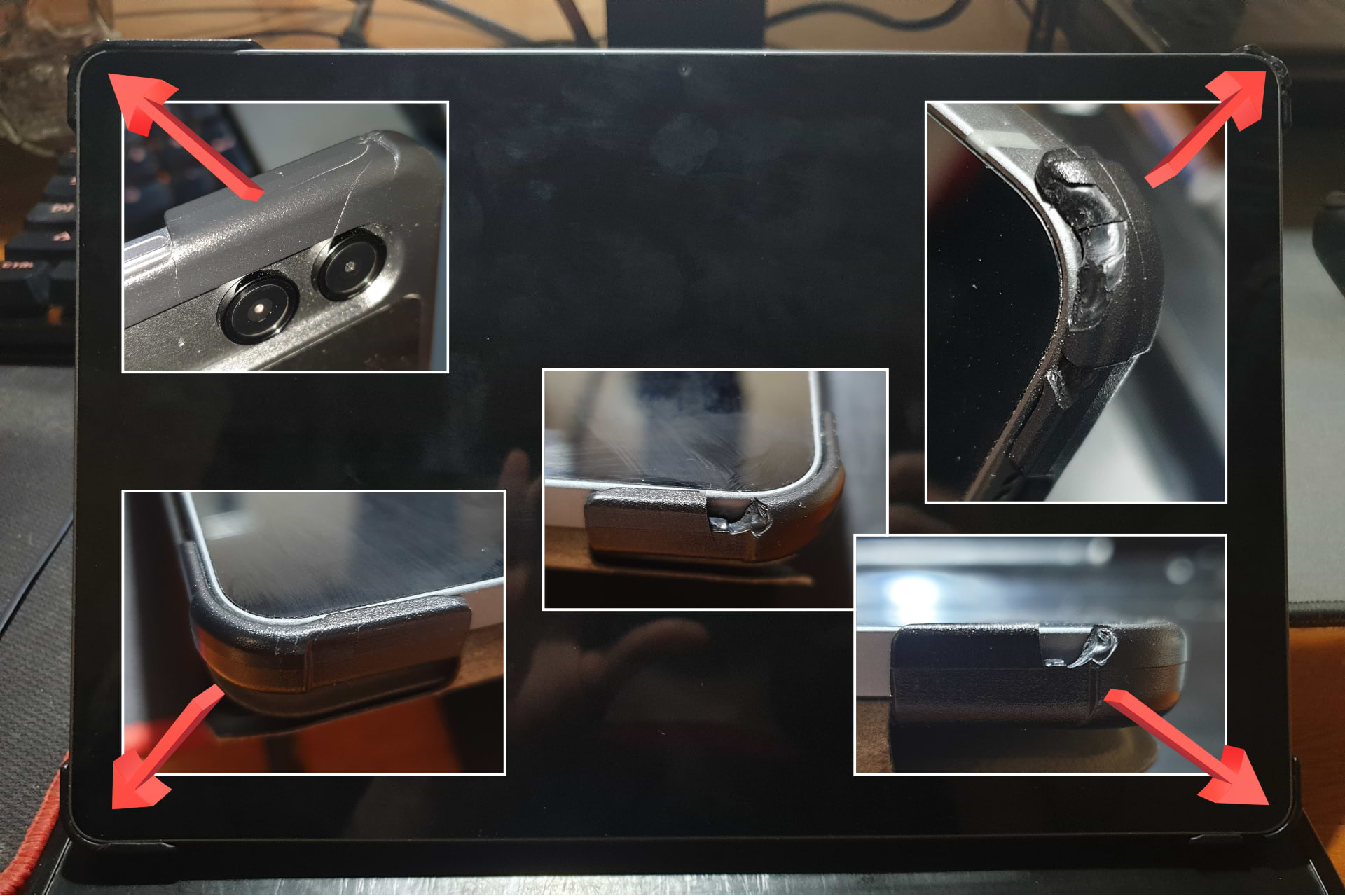 Функціонально він все ще тримає планшет, на щастя - але вигляд у чохдла такий, ніби він приїхав з фронту, чи ним цвяхи забивали.