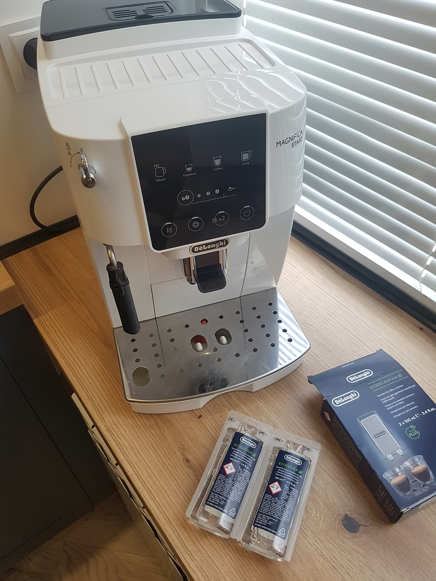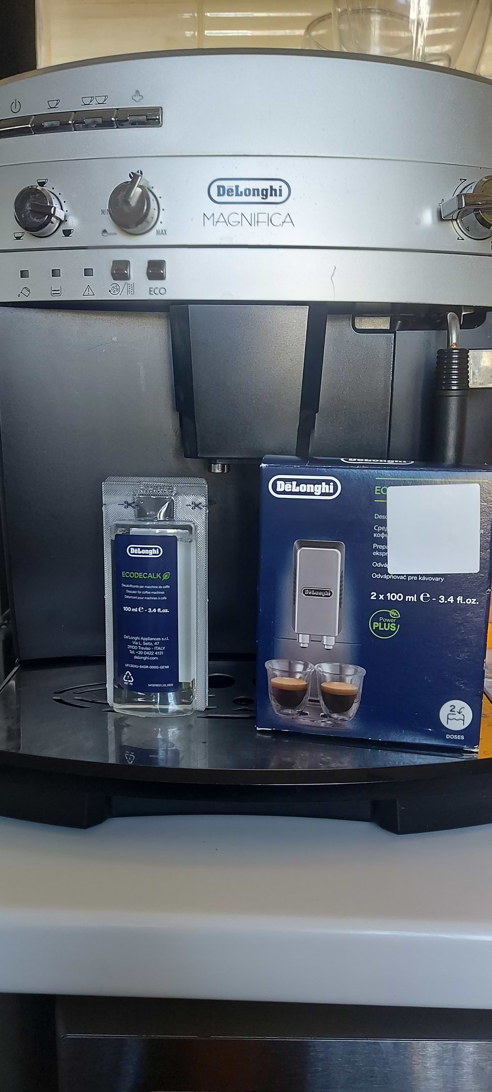 Добрий декальцинатор, вистачає на 2-3 неділі і залежності від того як часто ви користуєтесь кавомашиною