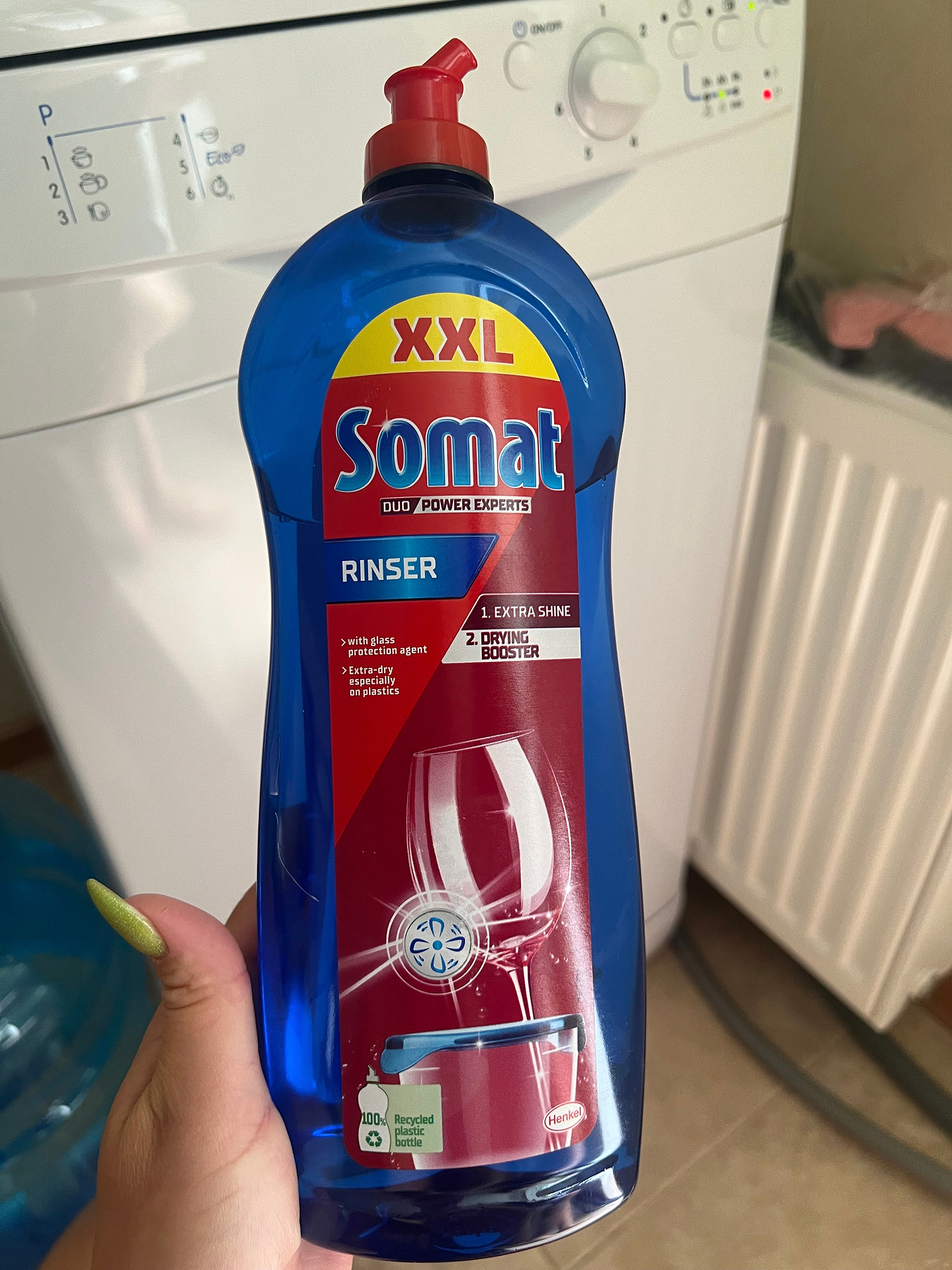 Використання вперше. Результат перевершив усі очікування. На посуді,прозоре скло коричневого кольору, взагалі не залишається ніяких слідів від води. Немає жодних парфумованих запахів( був неприємний досвід використання миючих fairy). Дуже задоволені ополіскувачем. Дякуємо за приємні знижки!!!