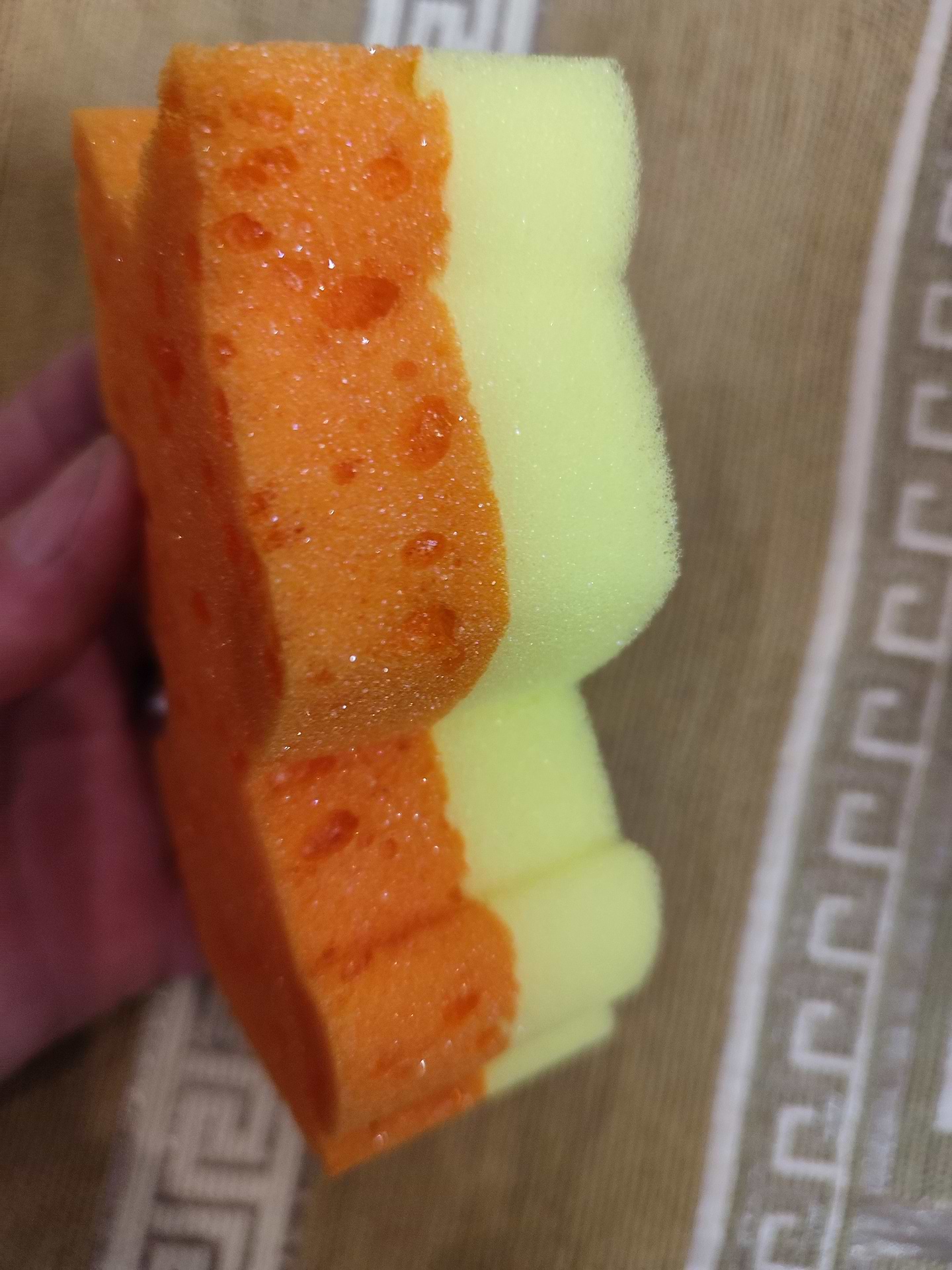 Губка цікава, оскільки має два гарні яскраві кольори - жовтий та помаранчевий.
