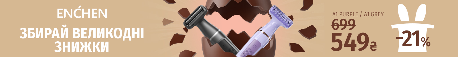 | Электрический триммер для тела Enchen A1 Lilac |