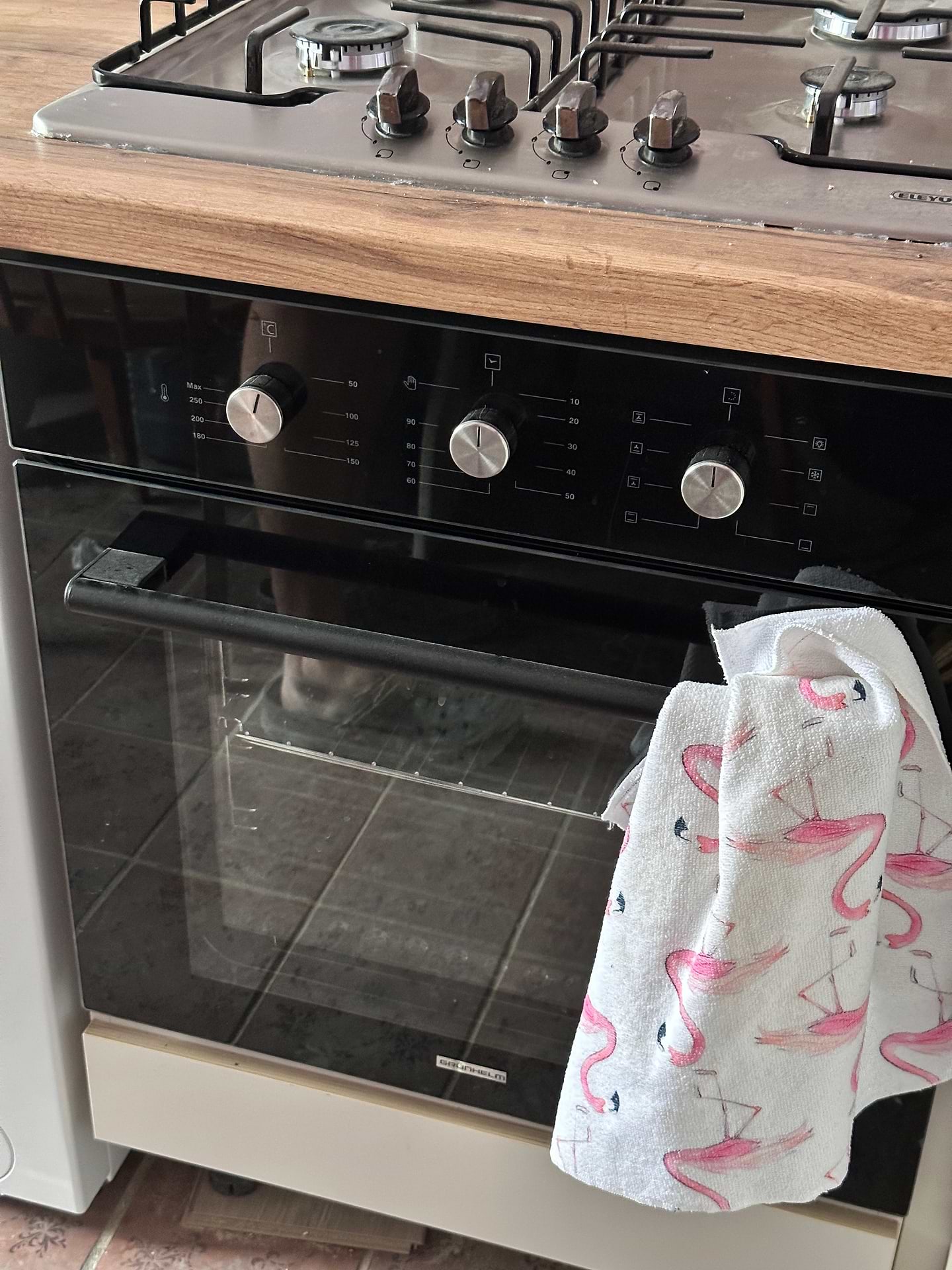 Духовка чудово працює. Зручне деко, достатньо режимів. Трохи незвично, що поки не покрутиш регулятор часу, вона не увімкнеться. По закінченню таймера вимикається. Але якщо крутити проти часової стрілки, то час не тікає, просто працює