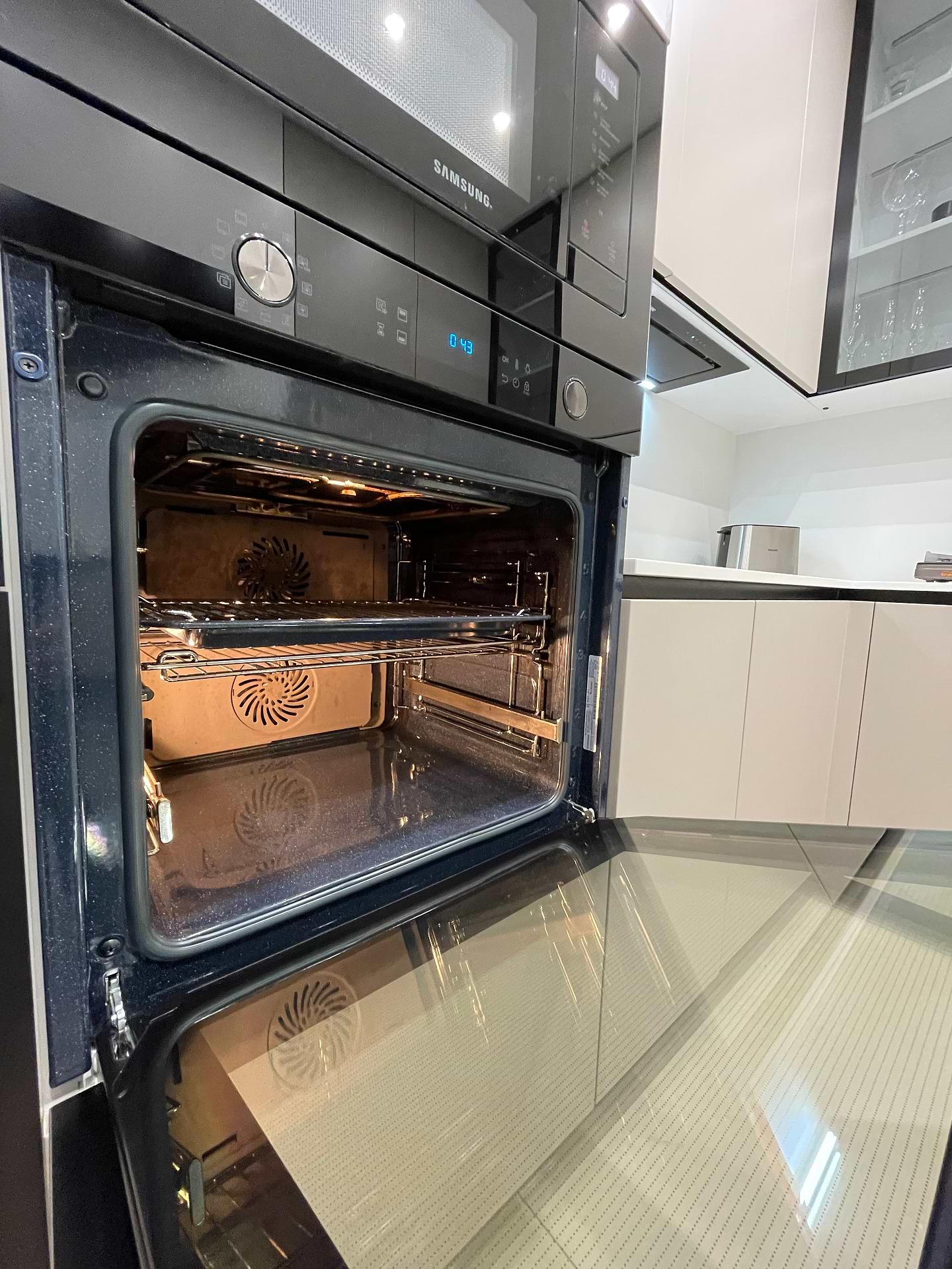 В основе работы системы очистки внутренней поверхности духового шкафа Samsung NV75K5541R лежит каталитический материал, который вступает в химический процесс с жирами. Любые продукты, которые мы выпекаем, особенно мясные и рыбные, могут оставлять множество брызг на внутренней стенке и это могло бы стать настоящей проблемой, если бы не особая система очистки. После того, как духовка остынет, вам будет достаточно протереть внутреннюю поверхность мягкой тканью, и она снова засверкает чистотой.