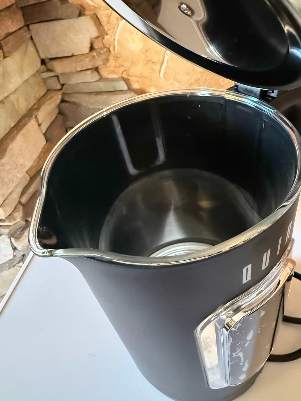 Подвійні стінки та ефект термоса реально економлять електроенергію: вода довго залишається гарячою. Панорамне вікно та дисплей допомагають контролювати рівень води та температуру. Кришка відкидається добре, не заїдає, звук приємний — навіть зранку не дратує. Ергономічна ручка і обертання на підставці роблять користування комфортним.