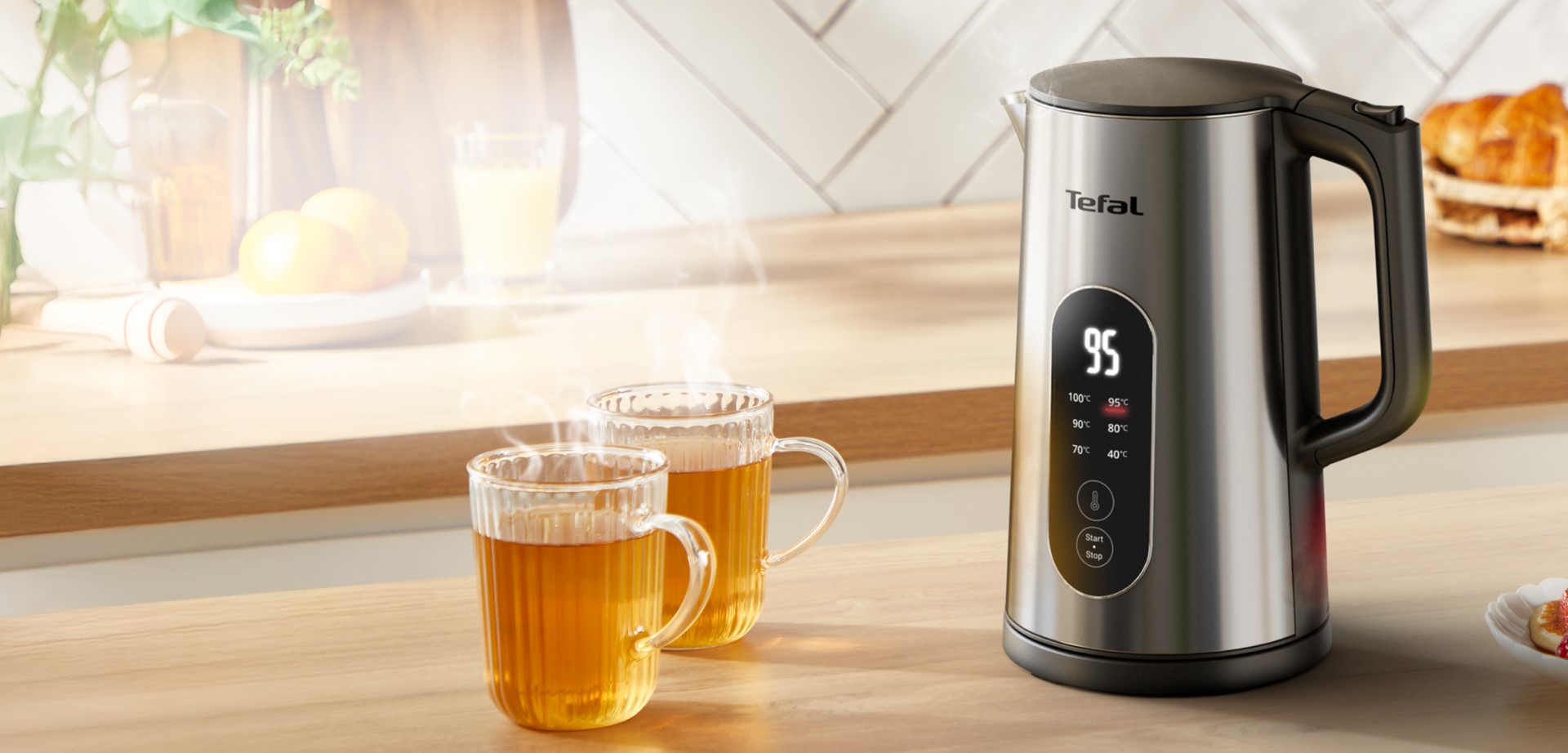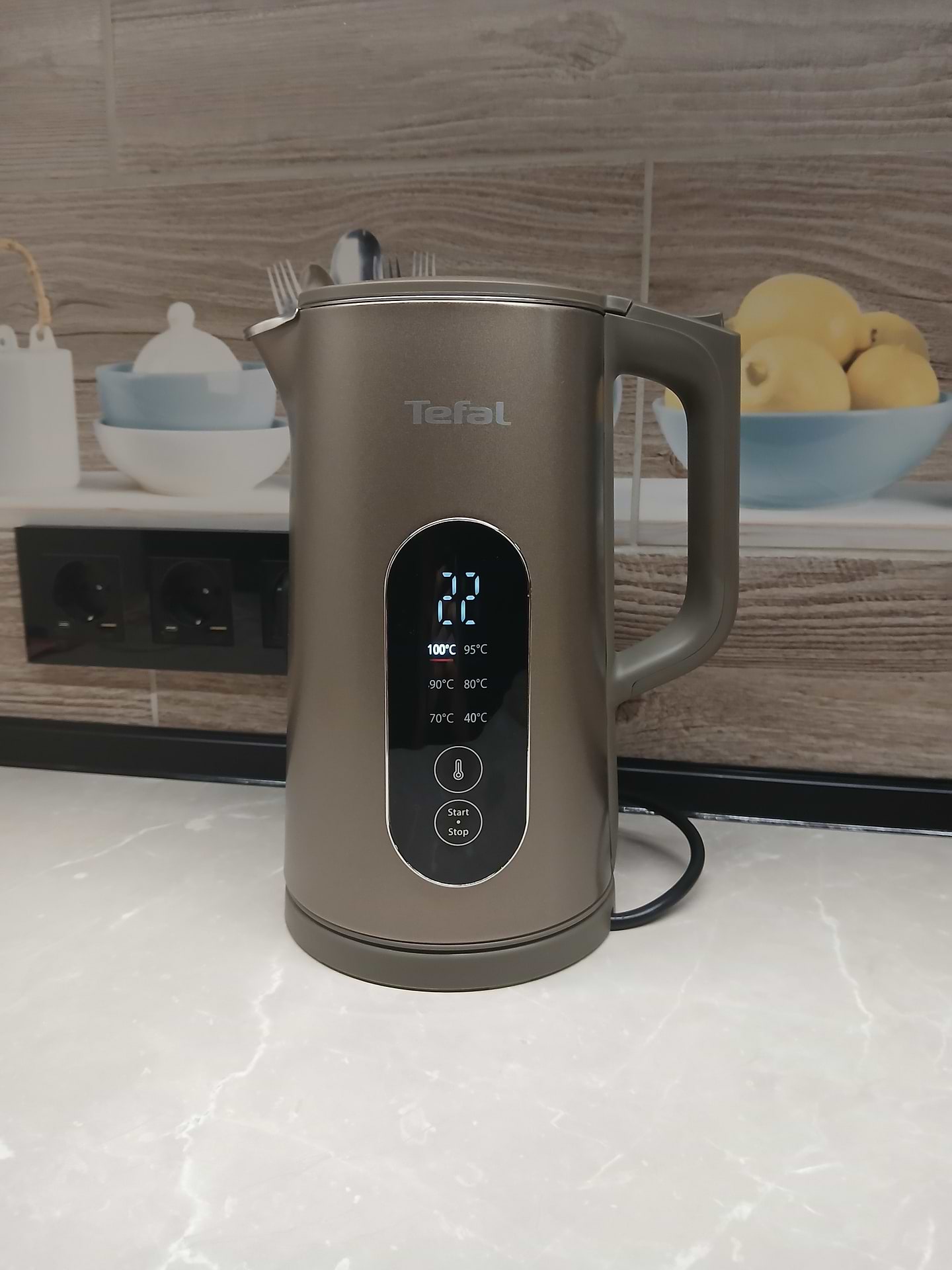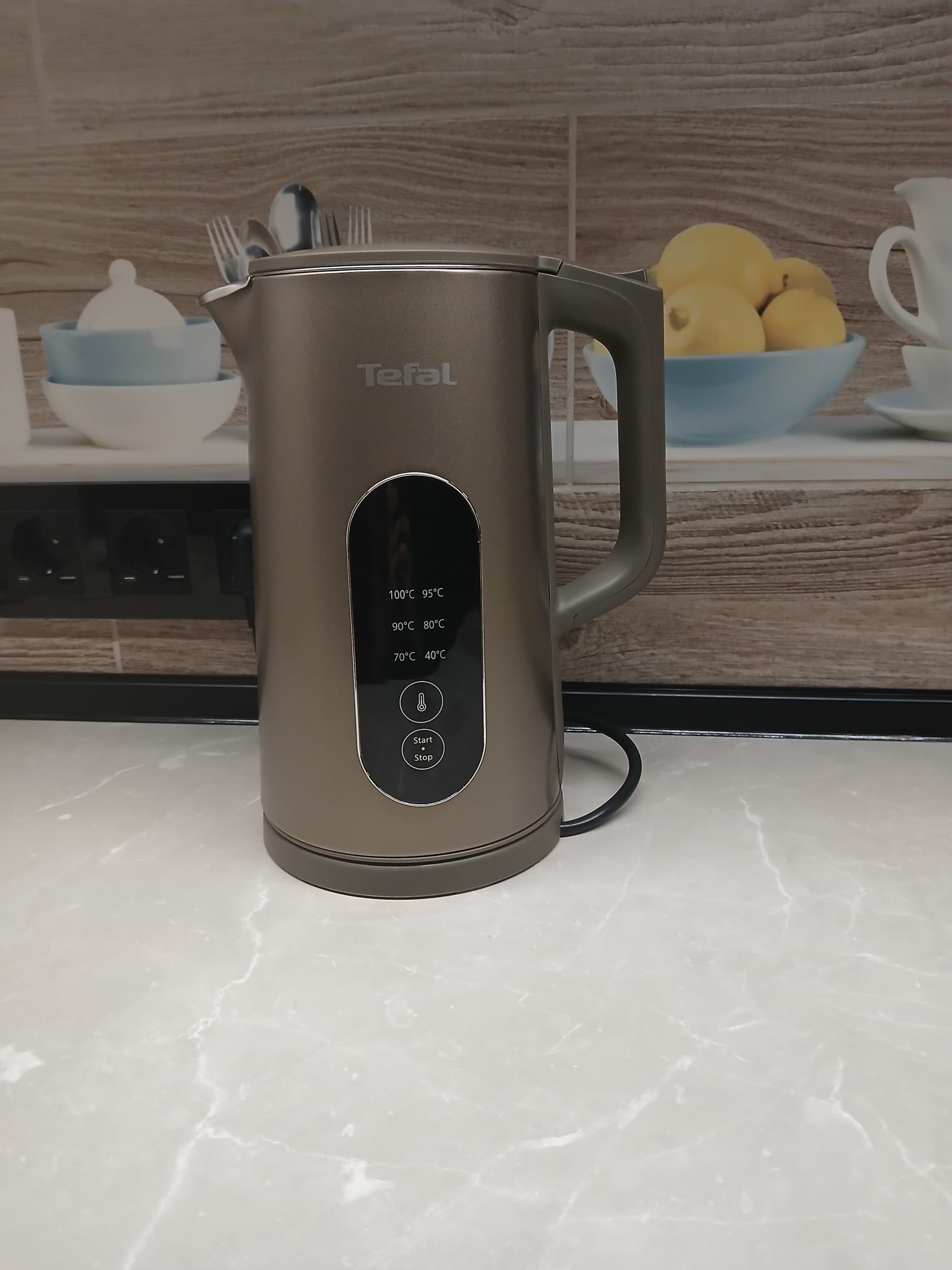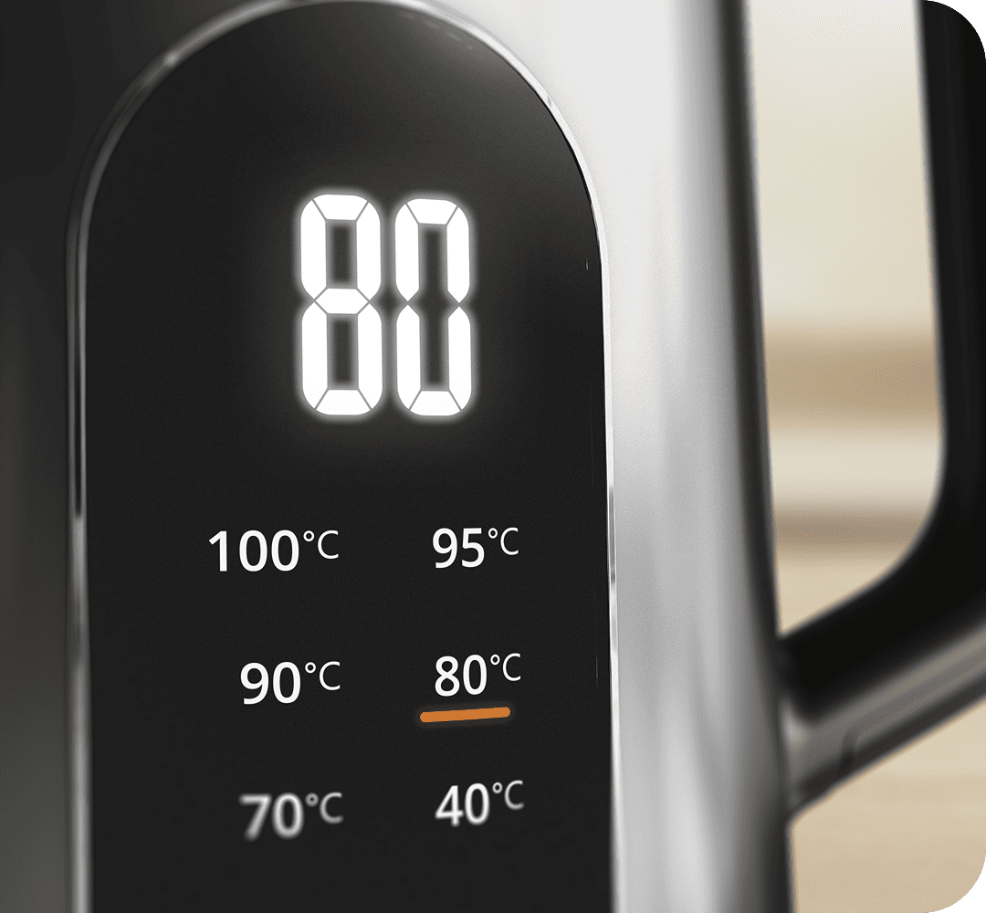 Подогреть воду не так просто, как кажется, однако TEFAL KI871FE0 SELECTION справится, ведь он выводит точную температуру на экран, и вы увидите, когда 40°C, 70°C, 80°C, 90°C, 95°C и 100°C.