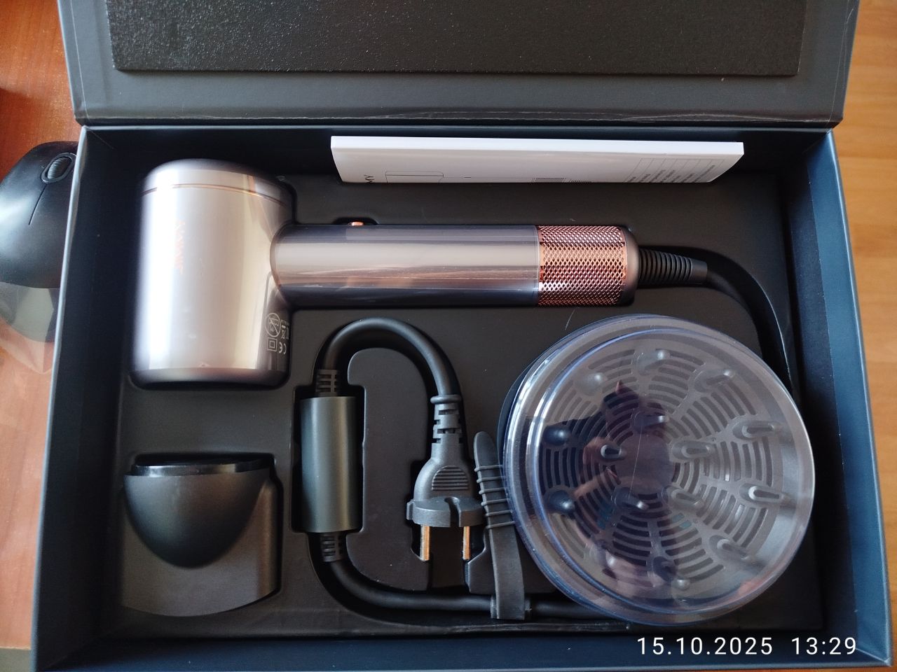 Фен просто бомба, виглядає так круто й дорого! Легкий і зручний, взагалі не втомлює руку. Сенсорний дисплей супер, швидко виставляєш потрібний режим. Волосся висихає за лічені хвилини і мяке, як шовк а не пересушене. Магнітні насадки це просто кайф, знімаються і ставляться за секунду. Дуже потужний потік повітря. Жінка просто у захваті!