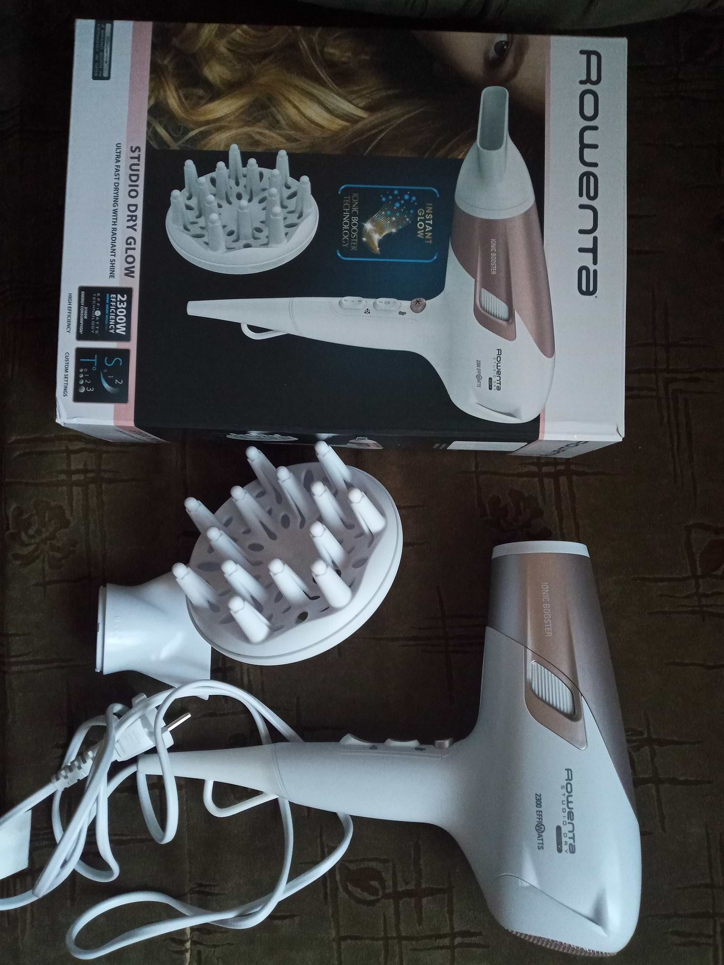 Очень красивый фен вживую. Кому на подарок - прям супер! Все, что надо, в нем есть - отдельная регулировка температуры и потока воздуха, ионизация, диффузор. Для тонких волос очень советую - классная вещь для объема. Чуть зафиксировали - и вперед, покорять мир))