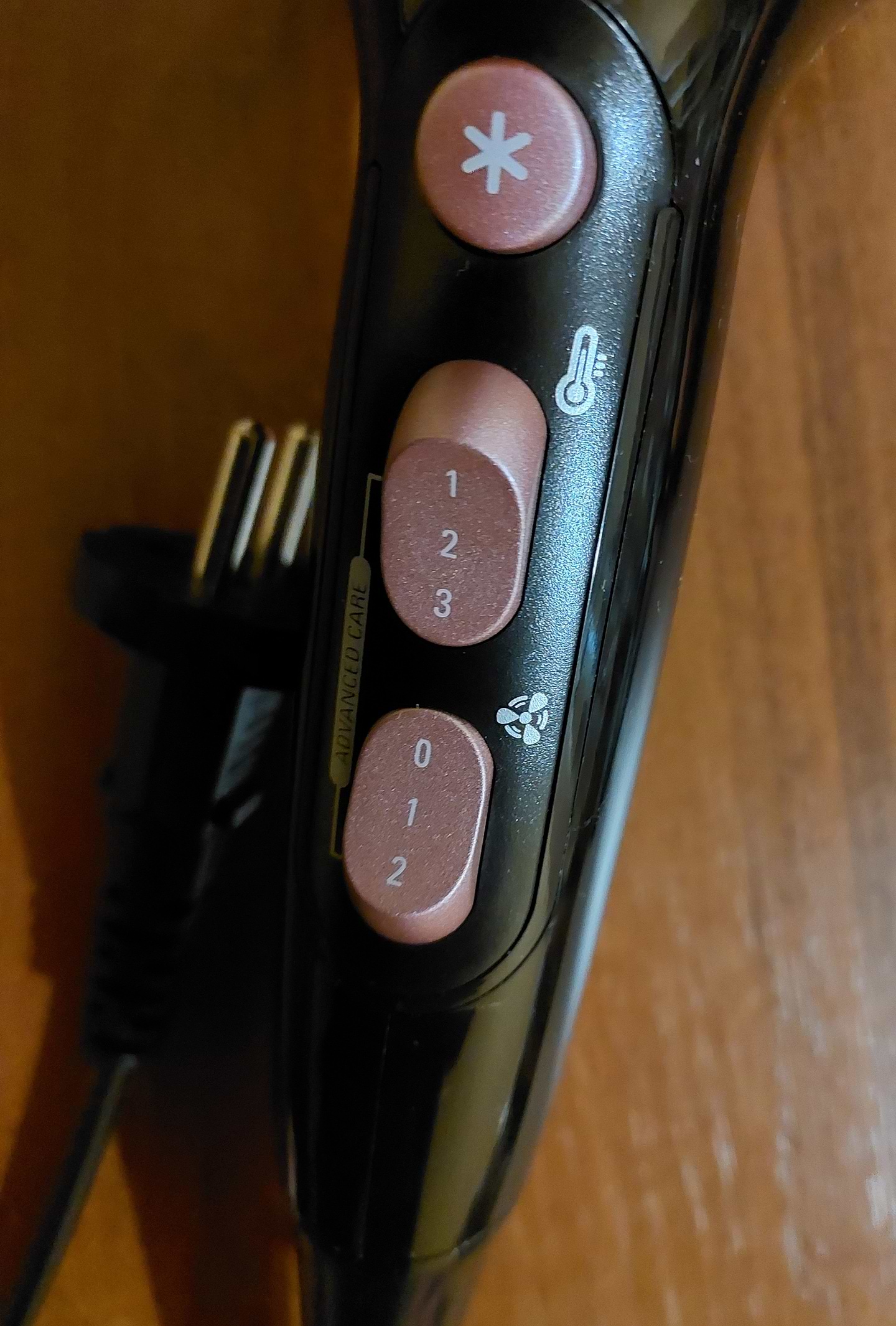 Купила цей фен тому що він гарного кольору і є налаштування температури сушіння волосся (холодне, тепле та гаряче повітря).