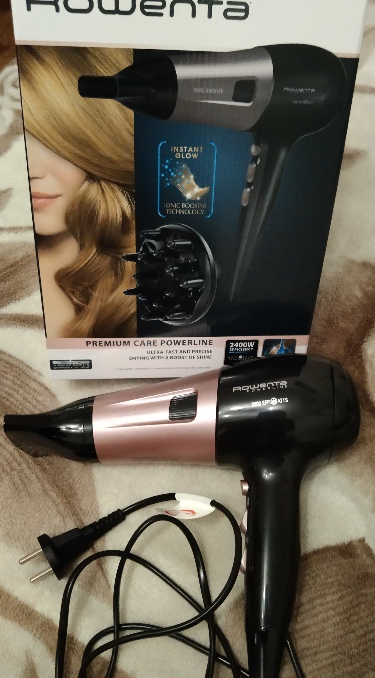 Користуємось феном вже другий тиждень. Обирала саме модель Roventa тому, що попередні фени у нас були саме цієї фірми і я ними теж була задоволена. Саме ця модель Roventa CV5940FO відрізняється від старіших моделей зручним дизайном, відносно тихою роботою та легким, але потужним потоком повітря. І я з середньою довжиною волосся, і дочка з довгим волоссям задоволені. Фен не надто шумний, звук приглушений. Потік повітря піднімає волосся, що зручно для об'ємної укладки. Волосся не електризується. Сушить швидко, але відчувається, що сушка делікатна для волосся, зовсім не агресивна і не заплутує його.