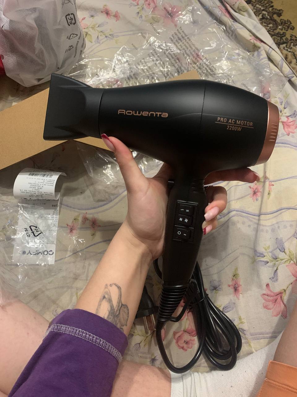 Купил данный фен маме. Фен очень мощный, удобный в использовании и функциональный. Мама феном очень довольна. В фене в комплекте две насадки. Длинный провод (1.8 метра). Гарантия на фен два года. Установлен профессиональный мотор. Всё прекрасно работает. Работой фена остались довольны, он прекрасен.