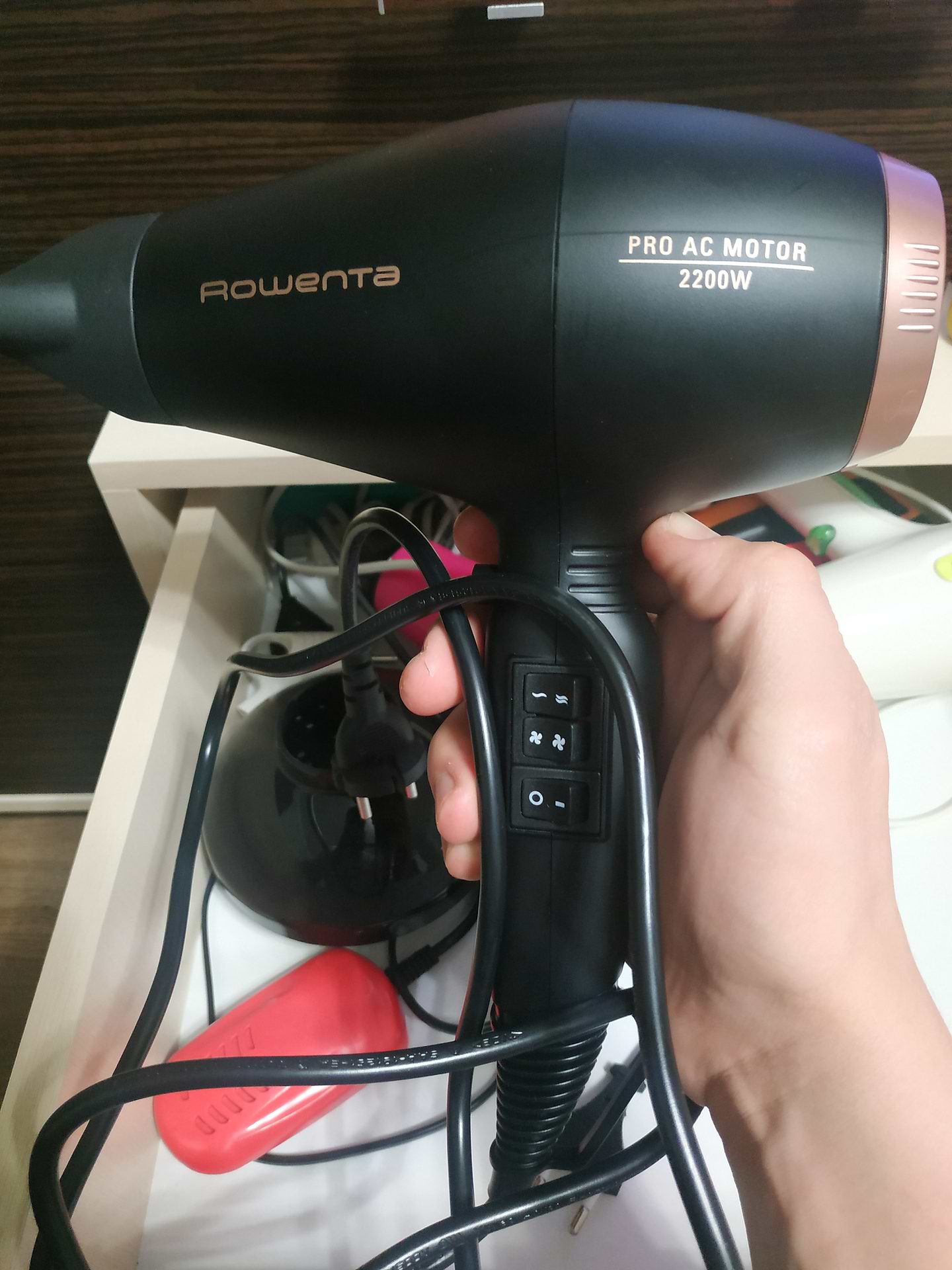 Цікавий фен,відчувається, що моторчик працює потужніше і має інший звук. Моє довге волосся висушує доволі швидко, спершу було незвично тримати в руках через його вагу.