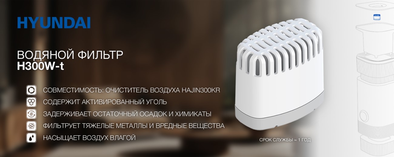 Фильтр H300W-t разработан специально для очистителя воздуха HAJIN300KR. Он качественно и эффективно очищает и увлажняет воздух в вашем доме. С помощью активированного угля этот фильтр надежно удерживает остатки грязи, химические соединения, частицы тяжелых металлов и другие вредные вещества, которые могут проникать с улицы. А благодаря водяному фильтру устройство не только очищает, но и увлажняет воздух, наполняя его необходимой влагой для здорового микроклимата. Именно поэтому модель H300W-t — отличное решение для любого дома, где вы заботитесь о качестве воздуха.