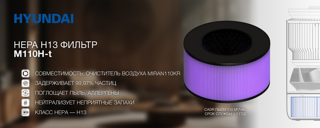 Характеристики Hyundai M110H-t HEPA H13 для Hyundai MIRAN110KR