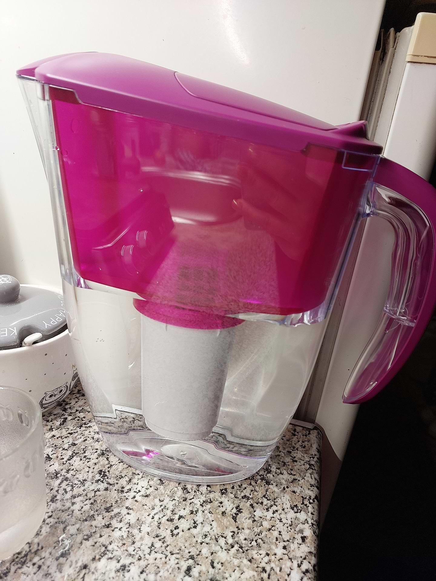 Незручна кришка, коли терміно потрібна вода, яка ще не повністю профільтрувалася, то незручно знімати, щоб злити воду з самого глечика без кришки.