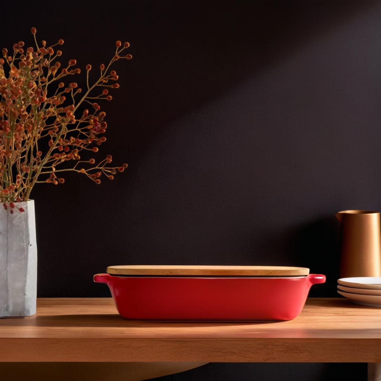 Материал - высококачественный керамогранит, который равномерно распределяет тепло и долго сохраняет блюда теплыми. Крышка позволяет удерживать влагу, сохраняя нежность и сочность ингредиентов. Благодаря гладкой поверхности уход за изделием не занимает много времени, а отсутствие вредных примесей делает его полностью безопасным для здоровья.