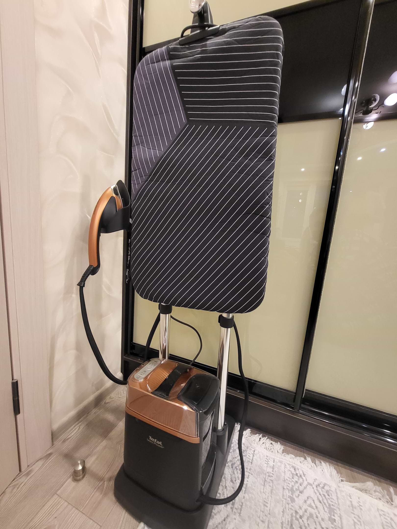 Чоловік подарував на день народження прасувальну систему Tefal IXEO Power QT2020. Я раніше тільки чула про такі, але ми дуже швидко розібралися як нею користуватися, як підняти дошку, або зробити її під нахилом, а якщо використовувати як праску, то можна дошку встановити горизонтально. Гріється дуже швидко, резервуар для води місткий. Подача пари дуже висока, розгладжує навіть дуже пересохлі речі, раніше потрібно було дуже попотіти, щоб відпрасувати. Дуже вдячна чоловікові за такий потрібний подарунок, значно полегшив мені процес прасування☺️
