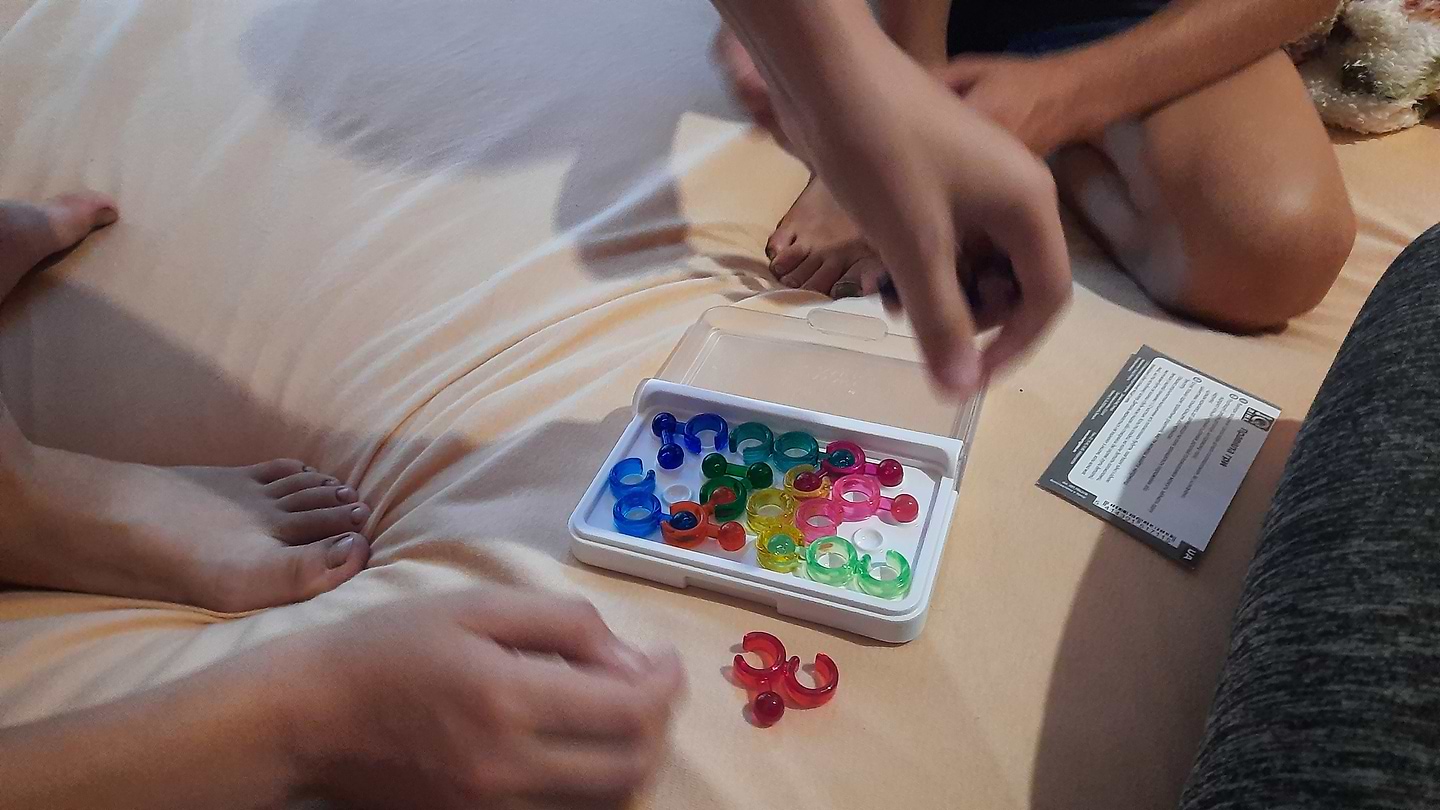 Как и все головоломки карманной серии, игра IQ Ссылка предусматривает процесс упаковки всех деталей в пределах игрового поля. Но игра имеет одну особенность, которая делает процесс более сложным, чем это звучит. IQ Ссылка содержит 12 деталей, каждая деталь состоит из 3-х частей: - 6 сегментов - замкнутые кольца. Эти кольца всегда занимают одно место на поле и не позволяют размещать любой другой сегмент; 16 сегментов - шарики; 14 сегментов - это открытые кольца. Вы можете разместить открытое кольцо в том же месте, которое занимает шар иной детали, если разрыв в кольце находится в той же ориентации, что и деталь с шариком. Каждое задание имеет только одно решение. Задача решена правильно, когда все детали связанные с другими частицам последовательно и создают одну группу связанных деталей. Таким образом, правильное размещение одной частицы головоломки становится намеком для размещения следующей. Детали игры яркие и привлекательные, 120 задач - настоящее испытание на способность формирования связей. Благодаря тому, что детали соединяются, вы можете решить многие из них с помощью логики, а не путем проб и ошибок. Найдите недостающие звенья в цепочке.