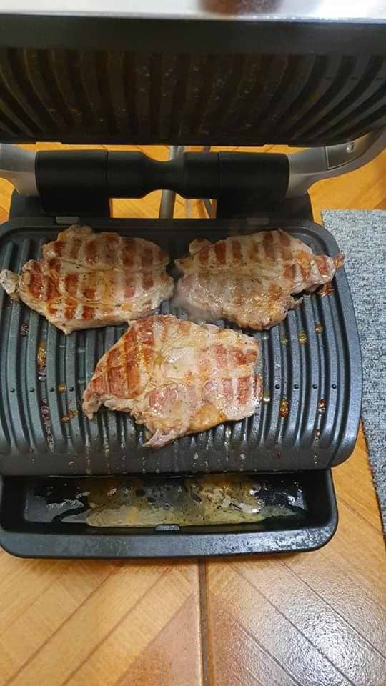 Теперь пользуюсь ним чуть ли ни каждый день. Это мой первый гриль, когда выбирал то рассматривал только Tefal. Думал брать предыдущую модель, но решил взять самую последнюю. Гриль просто супер, хороший дизайн, очень простое управление, выбирается язык меню. Готовит самостоятельно, замеряет толщину мяса или же овощей и пишет через сколько будет готов продукт, остаётся только следить какую степень прожарки хотеться и он это оповещает звуковым сигналом. Готовил свиные стейки, куриное филе, скумбрию, разнообразные овощи и все получалось отменно и без использования олии. Увидел в комментариях что при готовки используют пергамент, тоже попробовал и теперь готовлю только с ним. Теперь готовка стала ещё проще, ведь не нужно мыть пластины. Я отрезаю нужный мне размер пергамента, ложу его на стол, делю почти пополам и на нижнюю часть ложу мясо, в второй половиной накрываю (пергамент одним листом, не разрезая на две части ).И после сигнала ложу мясо в пергаменте на гриль, после приготовления пергамент в утиль и гриль остаётся чистым. В общем покупкой очень доволен, всем советую.