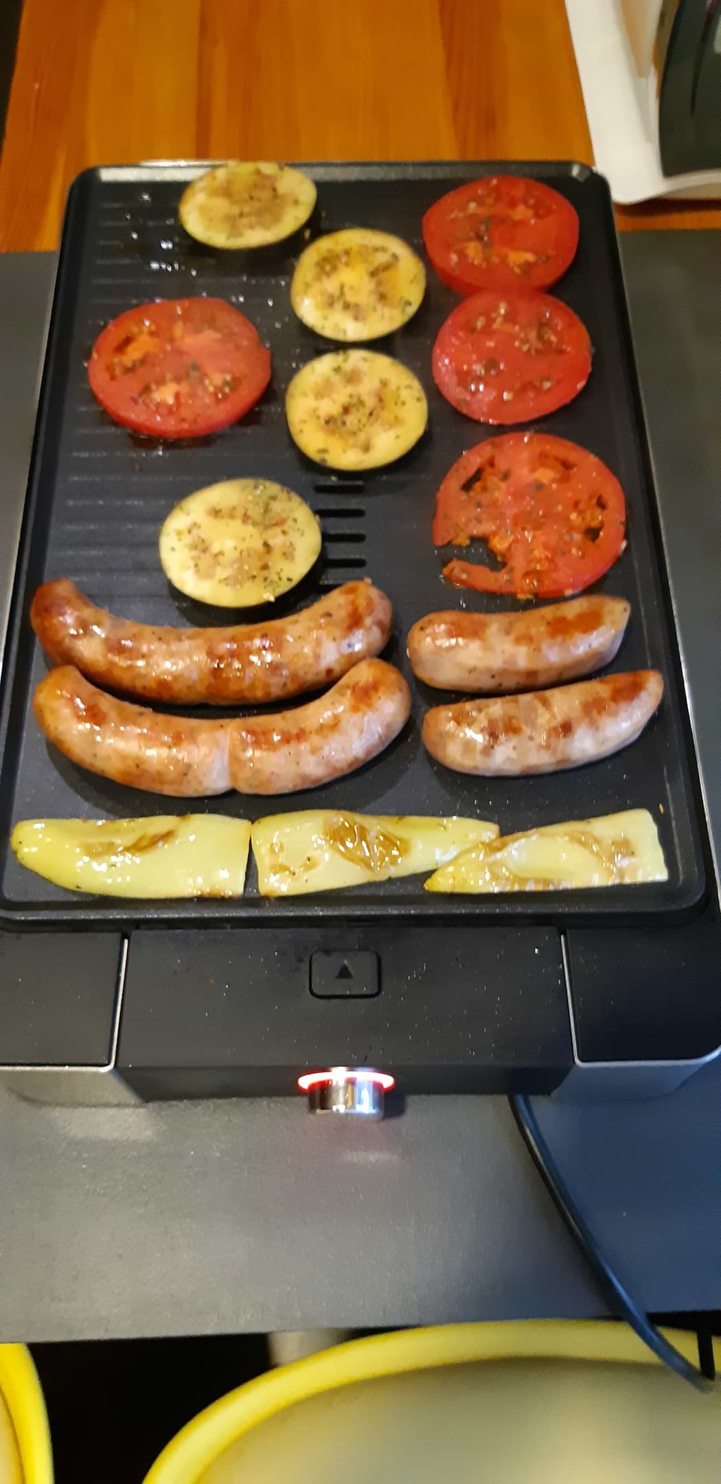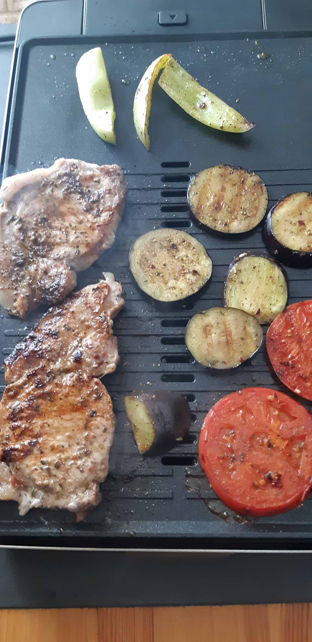 Эстетически красивый гриль особенно когда приходят гости.Готовила разные блюда хот доги,рыбу,стейки,овощи жульен в формах...Моется отлично,покрытие хорошее.Раньше был прижимной гриль этот понравился больше.