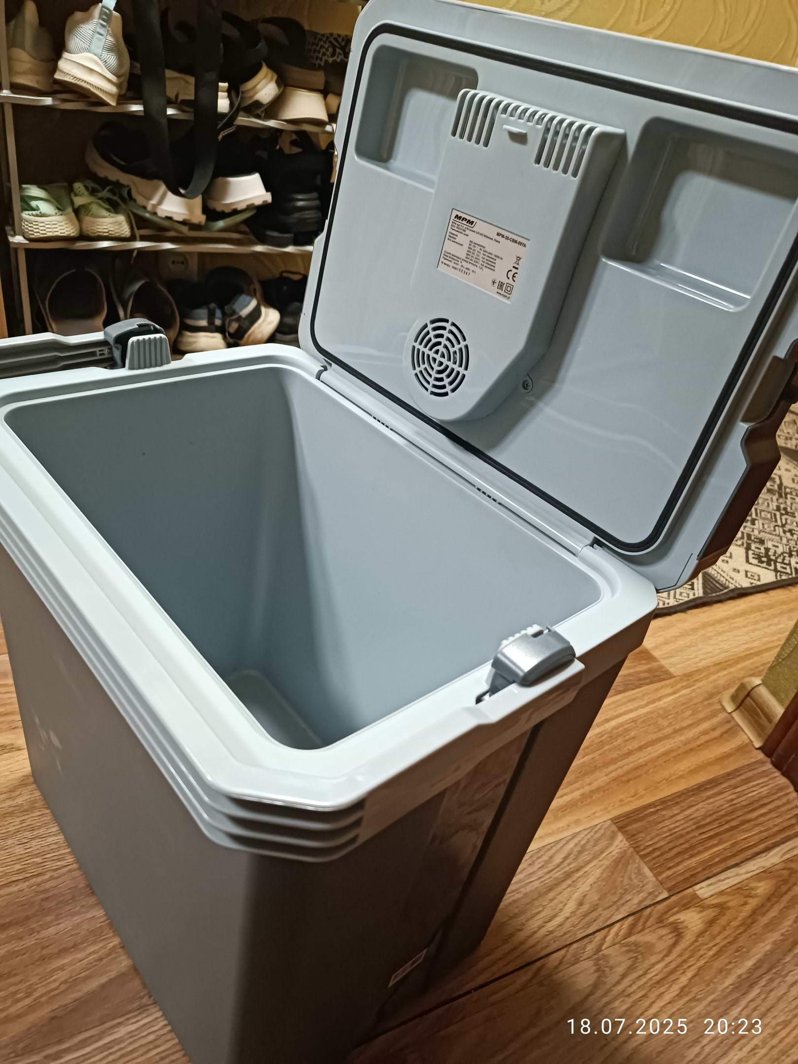 Використовуємо для невеликих подорожей. Продукти прям не захолонуть, але трохи охолодити воду можна. Якщо покласти аккумулятори холоду в середину і ввімкнути то зберігає температуру, і працює як холодильник. Після відключення ще деякий час зберігається температура.