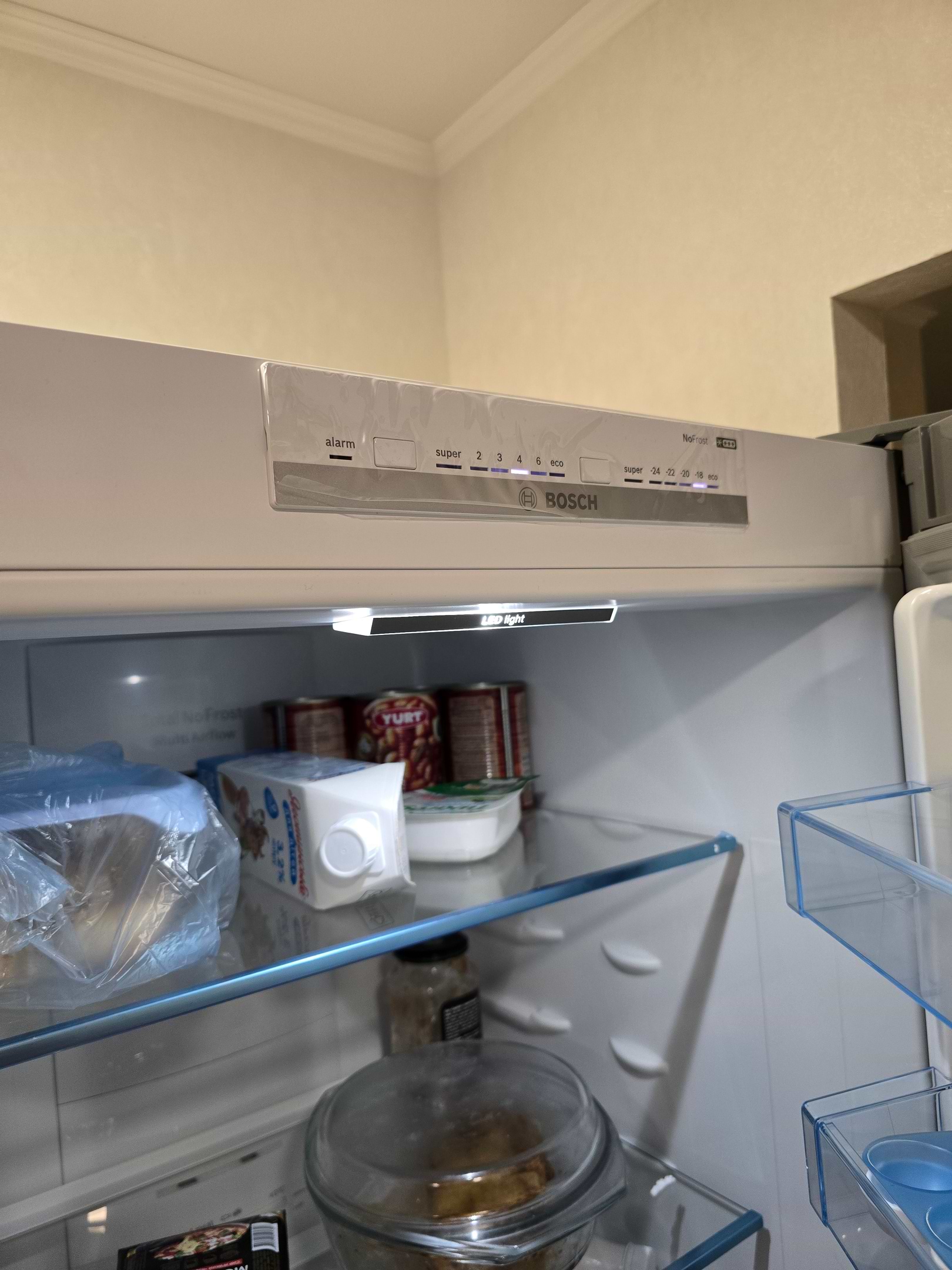 Долговечное освещение LED в холодильном отделении сэкономит электроэнергию, а также осветит продукты в выгодном свете, равномерно и без бликов.