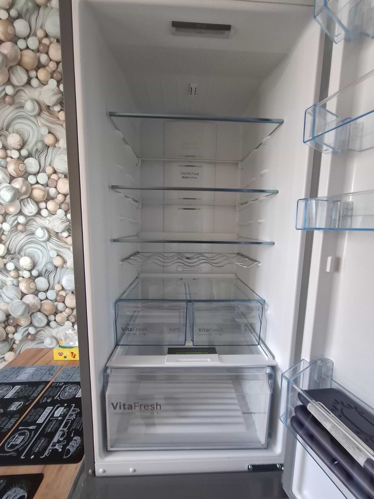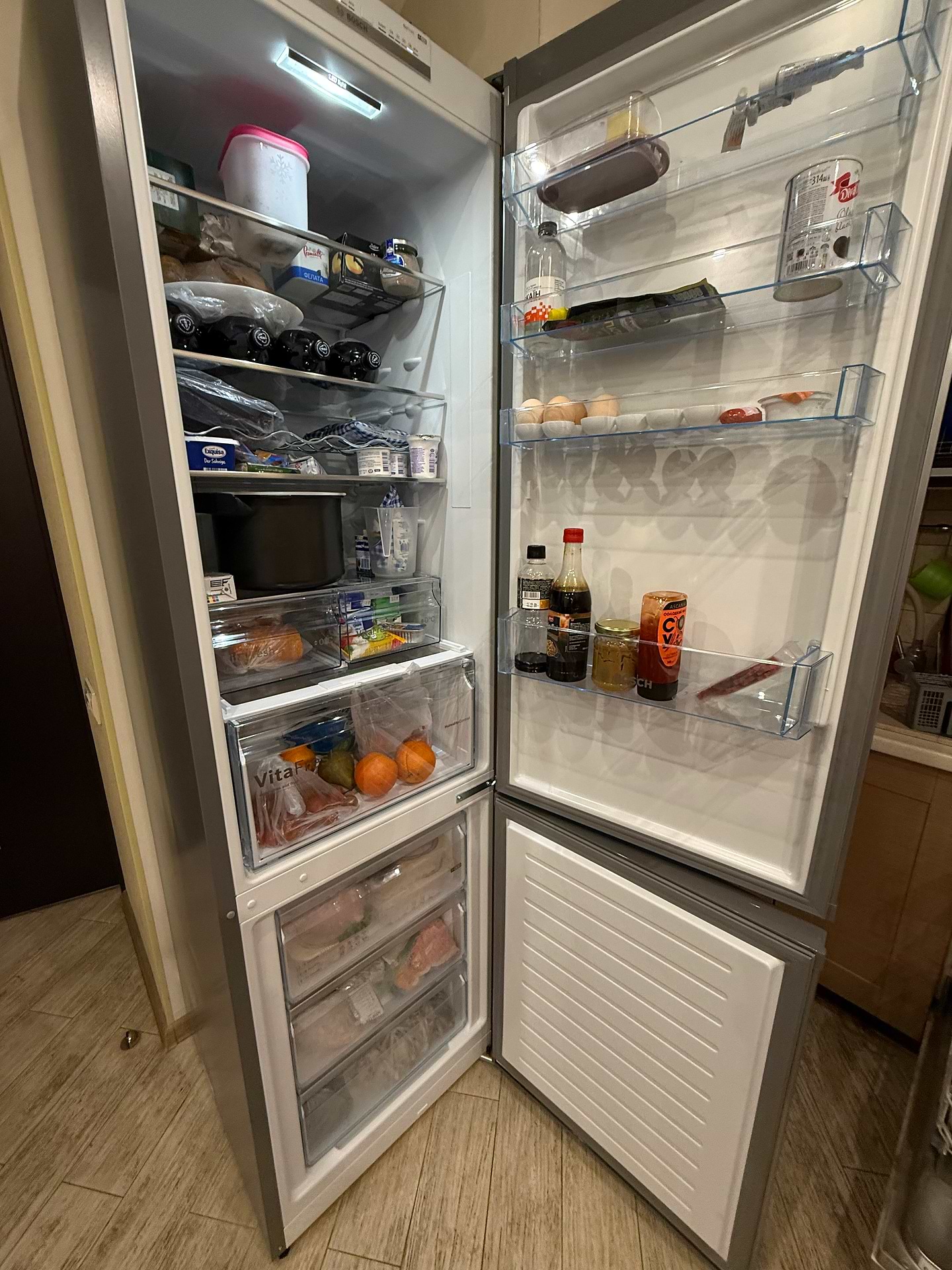 Користуюємось холодильником 2 тижні і дуже задоволені покупкою. Працює тихо, навіть уночі його майже не чути. Холодильник місткий, місця достатньо і в холодильній камері, і в морозильній. Полки великі та міцні, легко поміщаються каструлі й контейнери, також їх зручно регулювати по висоті. Сподобалась зона VitaFresh — овочі та фрукти довше залишаються свіжими. Дизайн стриманий і сучасний, добре виглядає на кухні. Загалом дуже зручний і якісний холодильник.