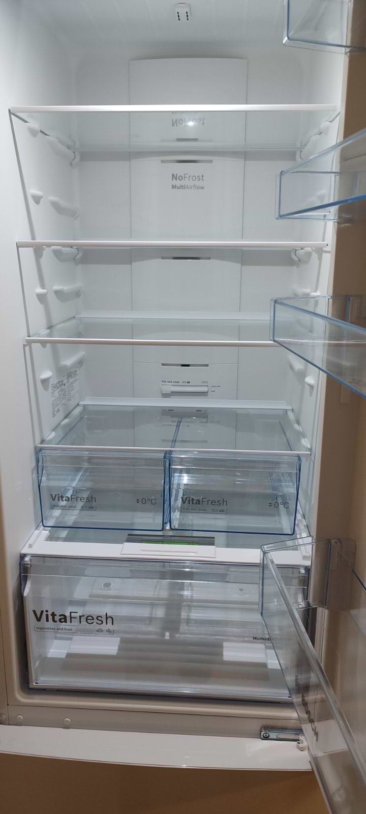 Працює тихо. Є дві шухляди фреш-зони для м'ясних і рибних продуктів та великий місткий ящик для овочів.