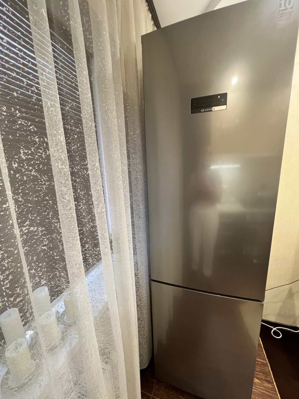 Стильний дизайн. Можливість регулювання температури холодильних камер. НоФрост. Доволі вмісткий.