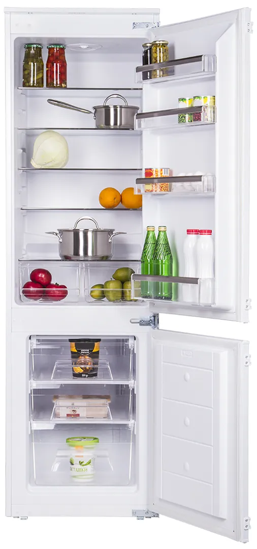 За свою стоимость - хороший встраиваемый холодильник, с наличием двух камер.