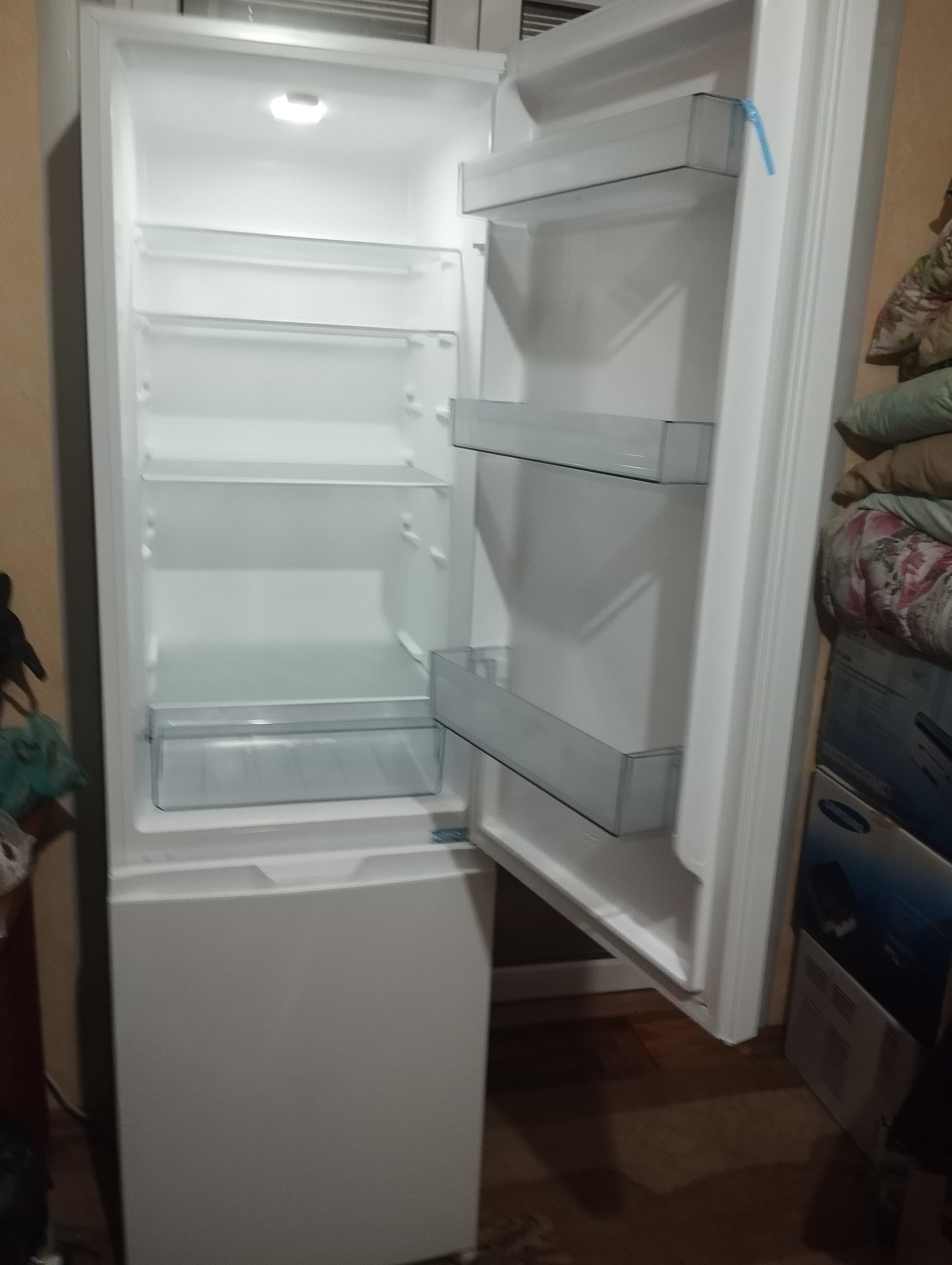 Холодильник працює два тижні без нарікань, компресор не гучний, в ночі не турбує. Сподобалось що ручки поховані і корпус і це дійсно зручно. С початку роботи було сильне намороження на задній стінці, але після двох днів все стало нормою коли завантажити продукти. Заморожується і відтаює. Все працює нормально функціонувати буде як холодильник.