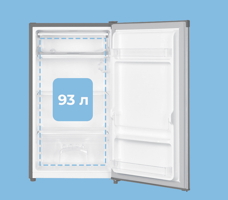Общий объем 93 литра, из которых 83 литра отведено для холодильной камеры.