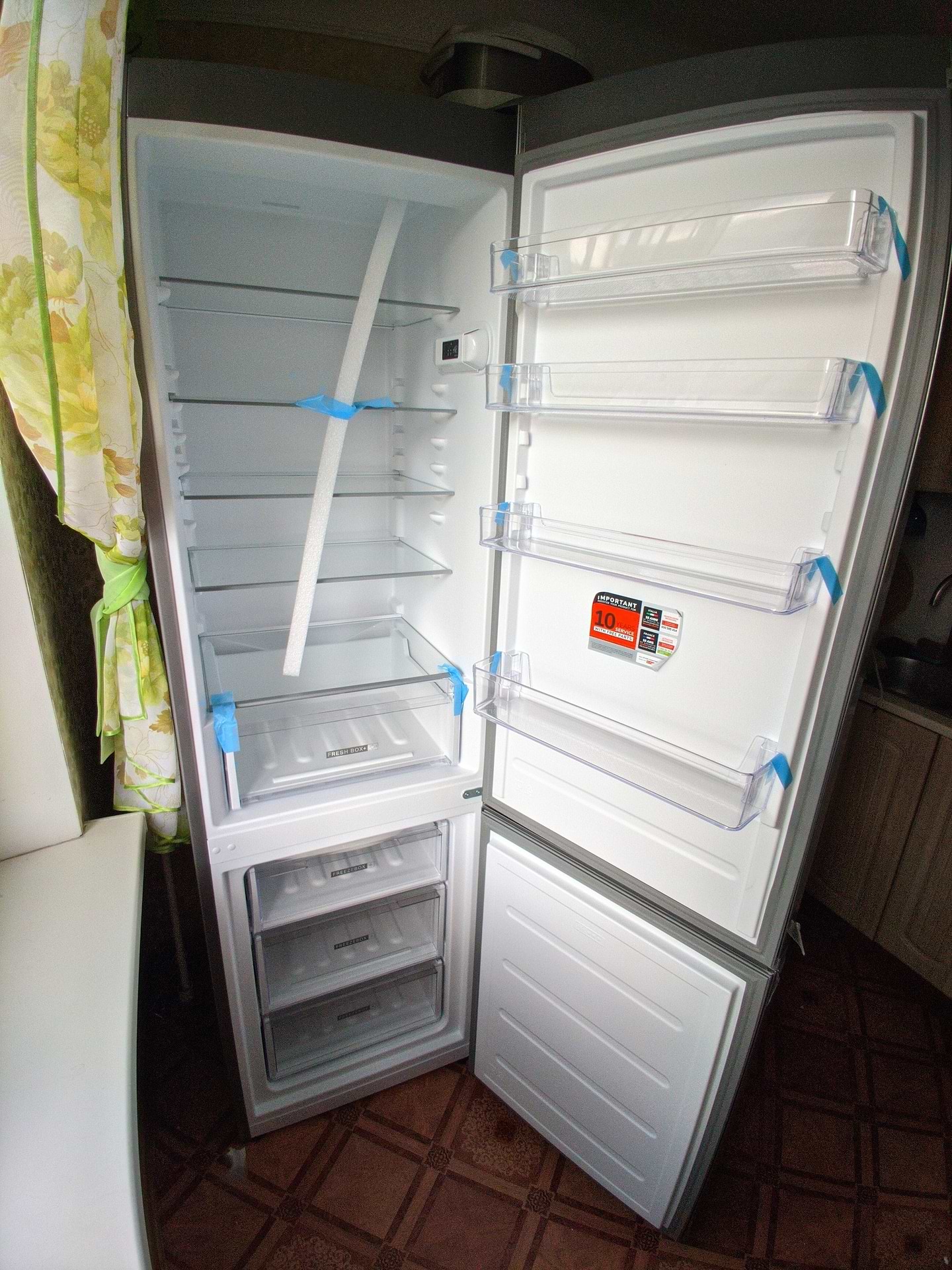 Доставили у вказаний час, занесли, розпакували. Під час доставки повідомили, що всі супровідні документи - у холодильнику (окрім видаткової накладної, яку підписали при отриманні). Дійсно, пакет документів був в Fresh Box, який був закріплений для транспортування. Тому при отриманні не перевірили. Пізніше вивилось, що гарантійний талон взагалі не заповнений, є лише пустий бланк. Розумію, що правильність заповнення гарантійного талону ми мали перевірити при доставці, але дуже були вражені новим холодильником та його розмірами. Як можна отримати заповнений гарантійний талон на цей холодильник?