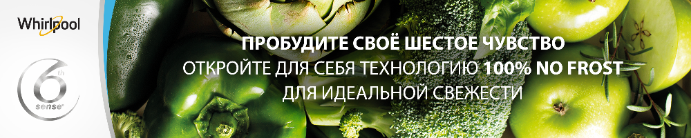 "Уникальные чувствительные элементы технологии 6th sense от Whirlpool реагируют на изменения температуры, определяя, адаптируя и контролируя ее. Если дверь холодильник случайно осталась открытой или в сети электропитания произошли перебои, чувствительные элементы определяют изменения и моментально направляют поток холодного воздуха в нужную зону, восстанавливая необходимую температуру до 5 раз быстрее**. Эта технология обеспечивает низкое энергопотребление, в отличие от обычных холодильников, в которых охлаждение происходит постоянно."