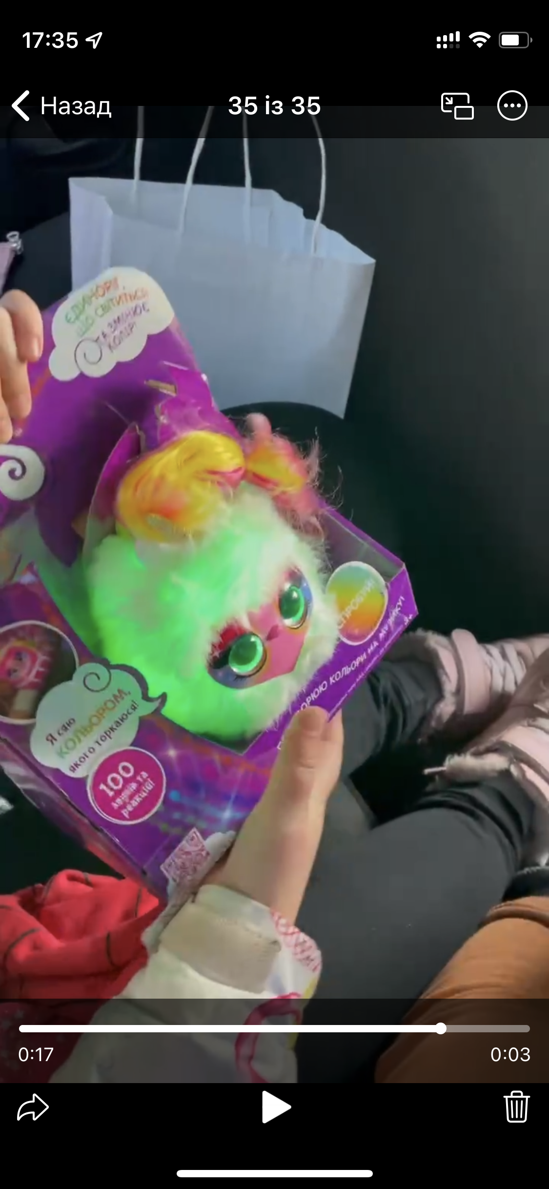 Довго вибирали на подарунок і спочатку іграшка не подобалася, здавалася надто маленькою, а ціна досить висока. Потім дивилися відео огляди на ют і бачили, як діти радісно реагують на цю іграшку. Купили і не помилилися. Дитина в захваті.